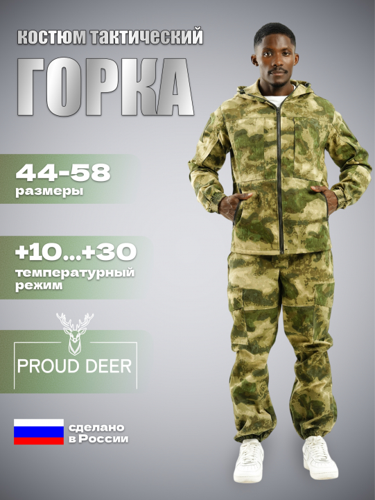 Тактический костюм горка — надежный выбор для мужчин. Он отлично подходит для вашего хобби: пейнтбола, рыбалки, охоты, туризма. В походных условиях и даже в армии. Это универсальный набор одежды для активного отдыха на природе. Идеальная спецодежда выполнена из высококачественной, дышащей ткани, которая обеспечивает отличную вентиляцию в самые жаркие дни.