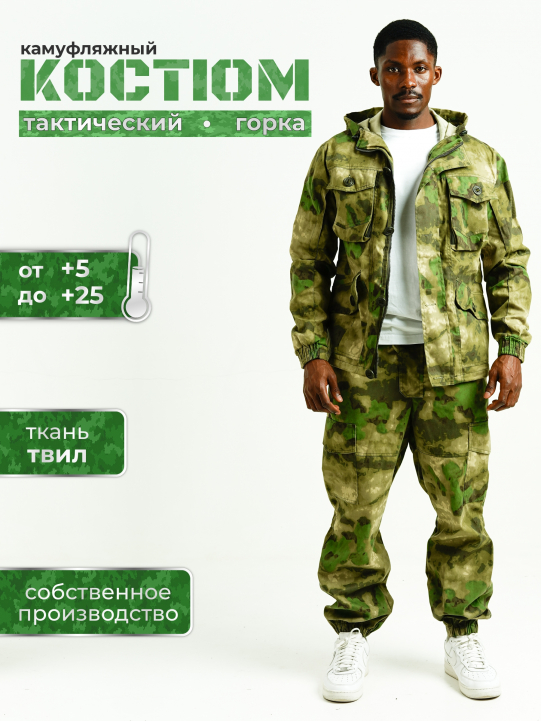 Тактический костюм горка — надежный выбор для мужчин. Он отлично подходит для вашего хобби: пейнтбола, рыбалки, охоты, туризма. В походных условиях и даже в армии. Это универсальный набор одежды для активного отдыха на природе. Идеальная спецодежда выполнена из высококачественной, дышащей ткани, которая обеспечивает отличную вентиляцию в самые жаркие дни.