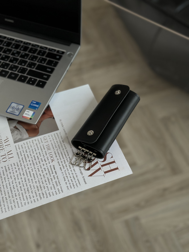 Внутри четыре карабина для ключей, застегивается на кнопки.