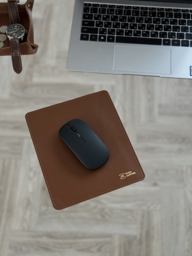 Кожаный коврик для мышки — это стиль и удобство. Выполнен из натуральной кожи в два слоя, на изнанке натуральный велюр. Размер 18*21 см.
