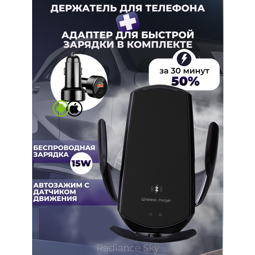 Автомобильный держатель с беспроводной зарядкой. Подставка для телефона в машину- удобное и функциональное решение для зарядки вашего телефона в автомобиле. Держатель с беспроводной зарядкой для.