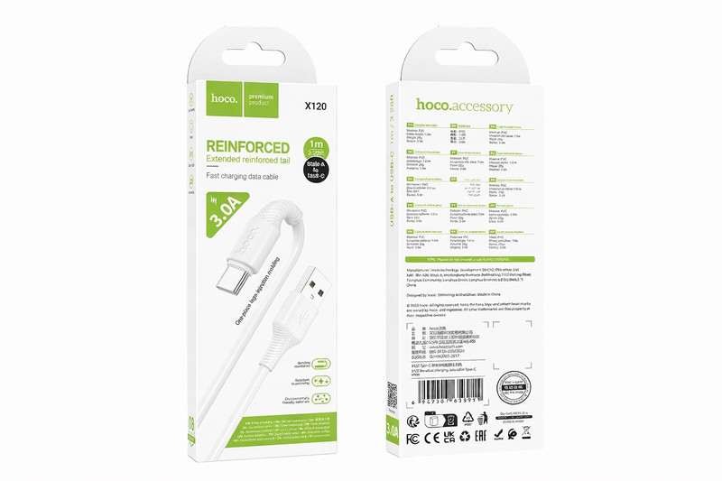 Hoco X120 Beneficio — это бюджетный и надежный кабель для зарядки и передачи данных, выполненный в классическом белом цвете из практичного ПВХ.
