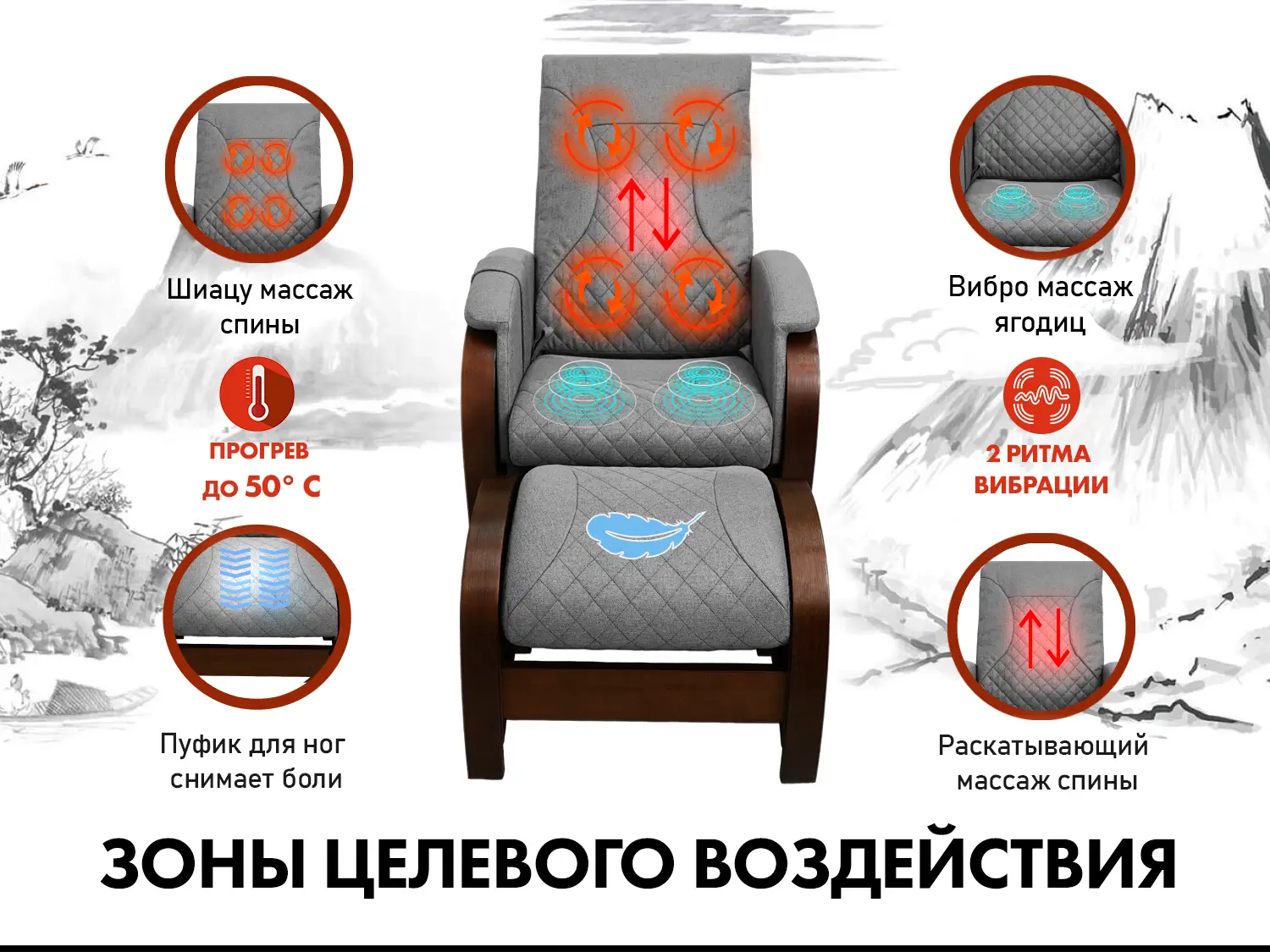 Зоны массажа: Поясница, Плечи, Шея, Спина, Ягодицы