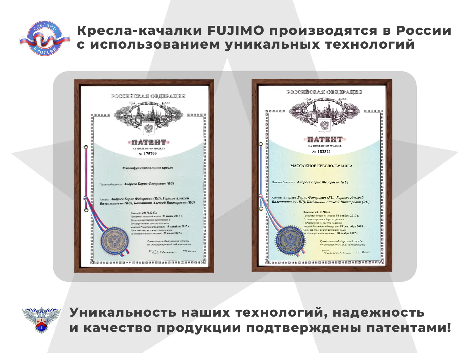 Сертификат: https://relaxa.ru//upload/iblock/6ac/dq6oi5f8d95hjanppr3kuqslly5lo3nb/Sertifikat_2021_2026_EGO_OTO_FUJIMO.pdf
