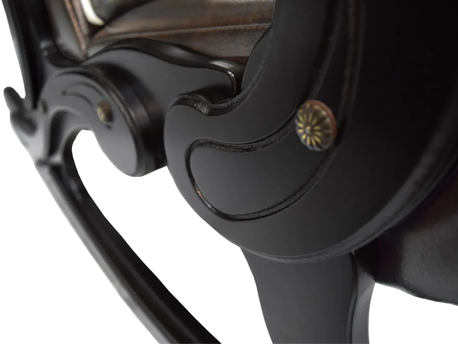 Боковины, каркас и подлокотники выполнены в классическом стиле и изготовлены из дерева