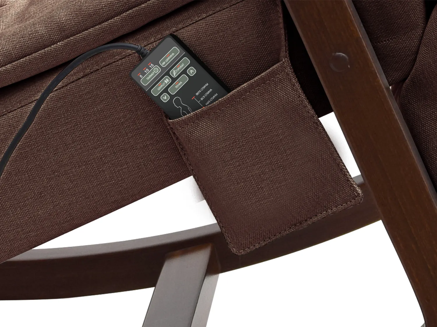 Пульт управления размещается в удобном кармане на подлокотнике кресла