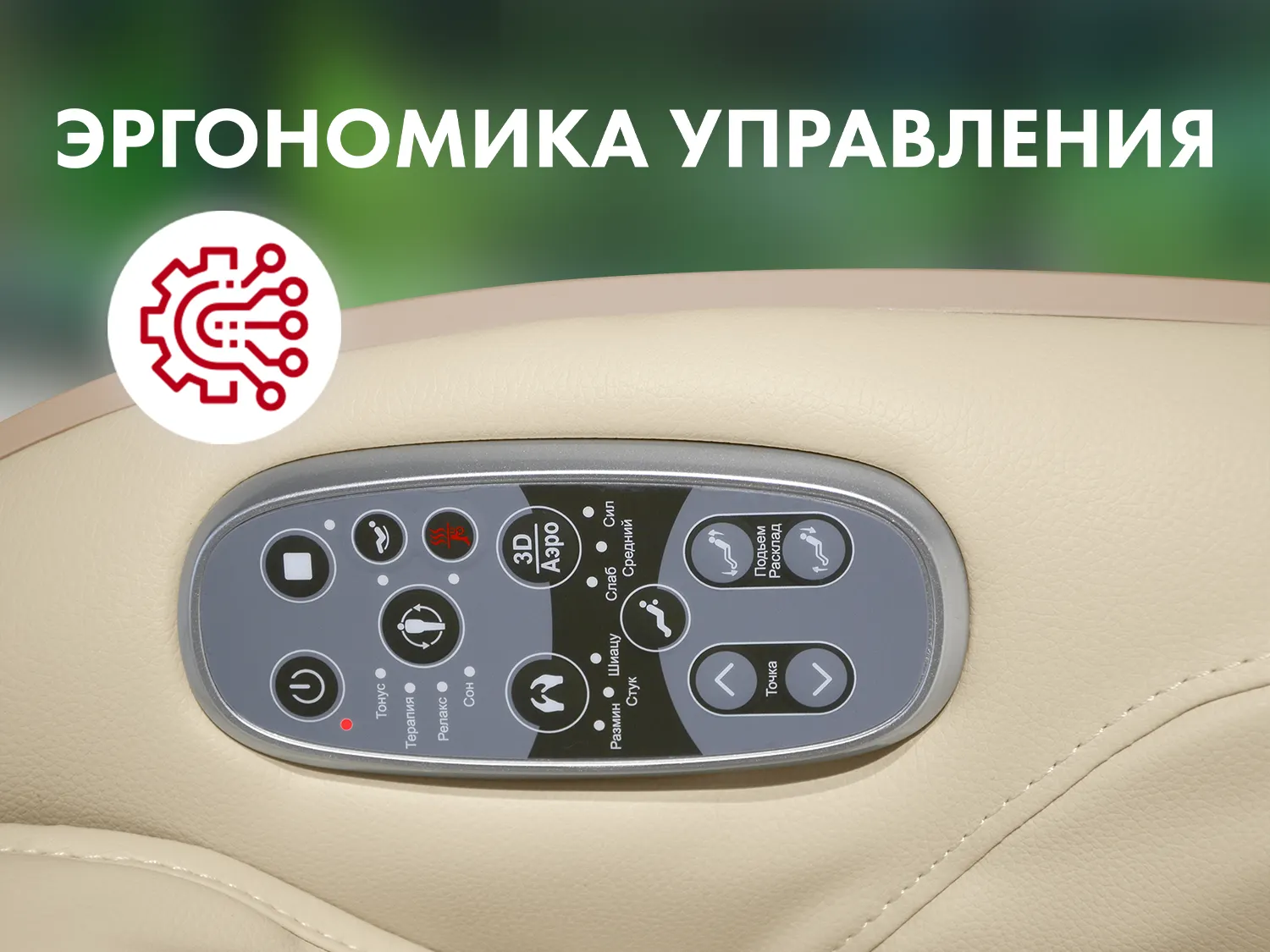 Профессиональный массаж реализован при помощи передового 3D механизма с выступом роликов вперед