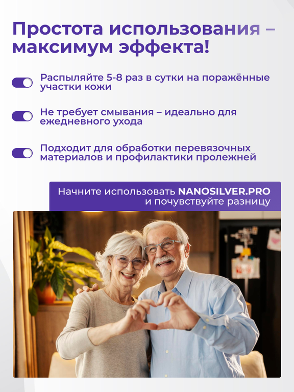 Противовоспалительное действие: Наносеребро подавляет воспалительные процессы, уменьшая покраснение и раздражение кожи.