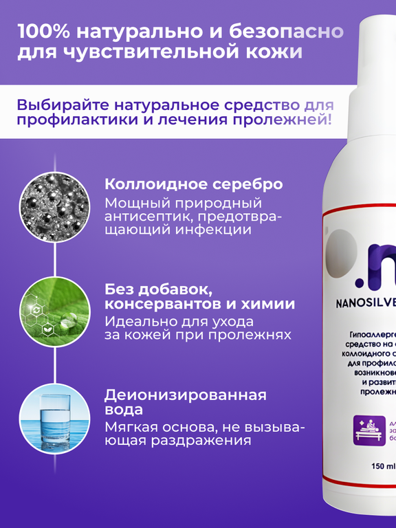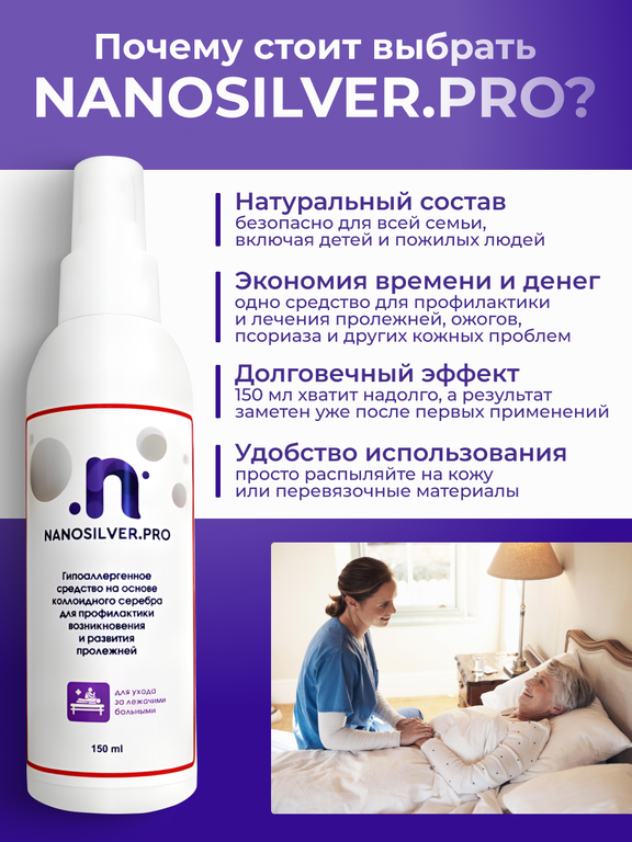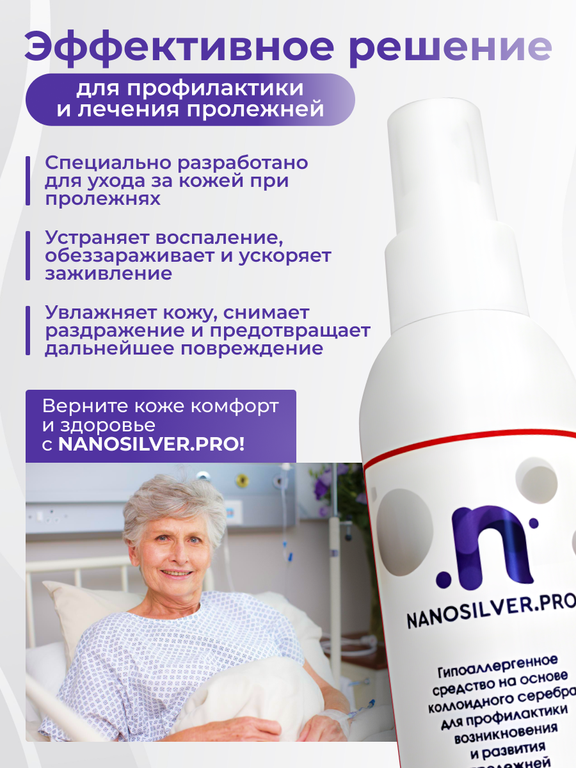 Чтобы купить Противопролежневое средство на основе коллоидного серебра для профилактики возникновения и развития пролежней NANOSILVER.PRO оптом по цене 690 руб., свяжитесь с поставщиком. Компания поставщик — Рelenka.pro (ИП «Бельцев Артем Григорьевич») из города Москва. Минимальная сумма оптового заказа: 25000 руб. Доставка возможна транспортной компанией, самовывоз, автомобилем, железной дорогой, курьером. Способы оплаты: безналичная оплата, наличными, кредитные карты.