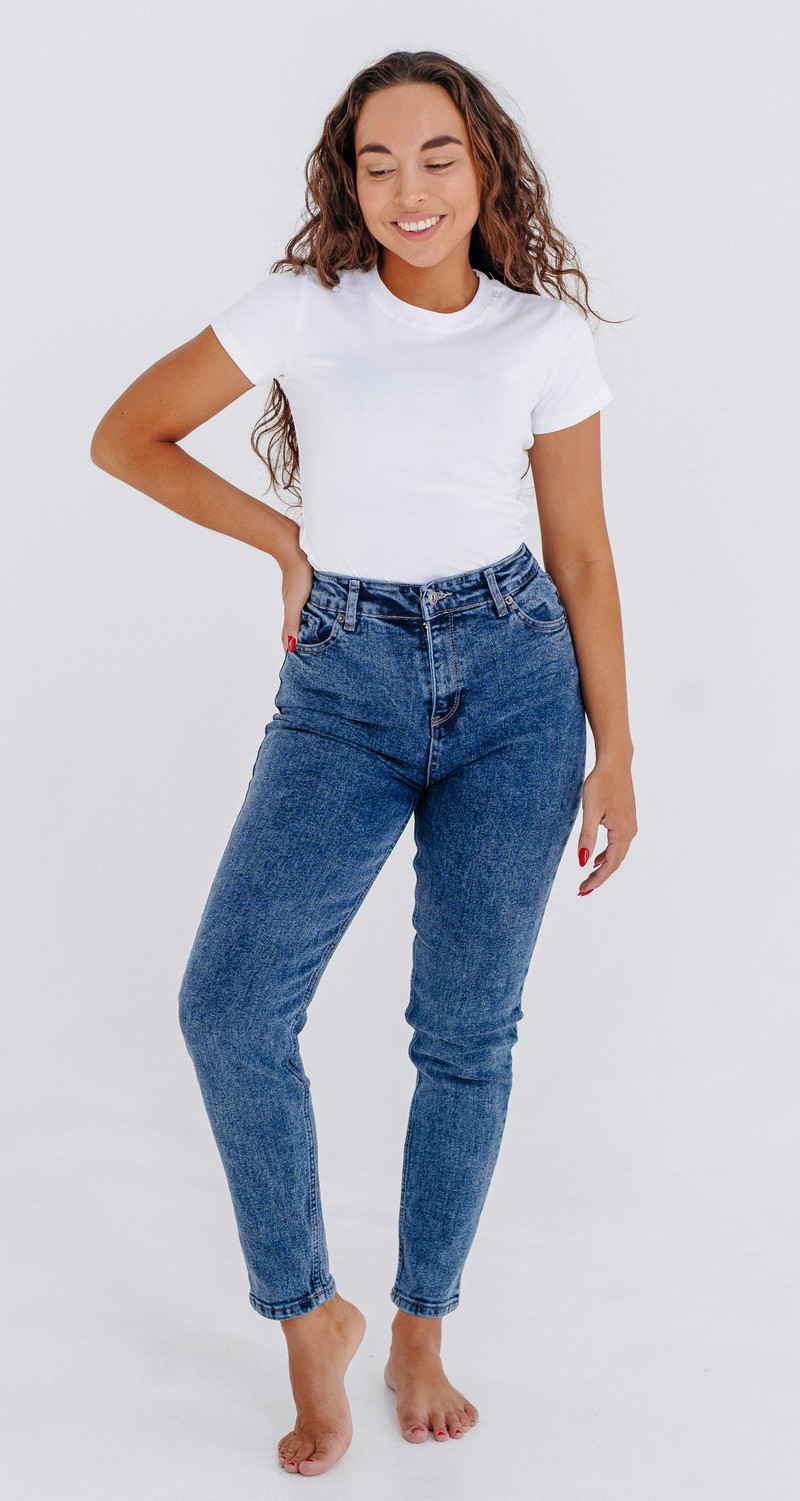 Джинсы слим с высокой посадкой — основа гардероба на каждый день. Выразительная трендовая модель Мом нашего бренда умело сбалансирует ваши пропорции тела и подчеркнет стройность. Сделает акцент на тонкой талии и женственных бедрах. Слим силуэт будет смотреться еще более аппетитно и визуально удлинит ноги, благодаря высокой посадке. А длина по щиколотку уравновесит невысокий рост. Забудьте правило что скинни подходят только худым девушкам. Облегающие брючины прямого кроя имеют зауженный к низу фасон и оказывают корректирующий эффект. Скрывают недостатки и красиво сидят в обтяжку на любом типе фигуры.