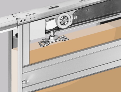Отличается от базовой модели типом направляющей и усиленным роликом для дверей весом до 80 кг