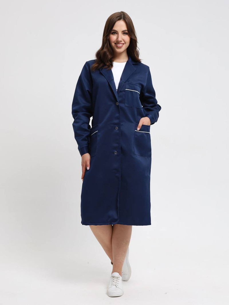 Функциональный и строгий по стилю халат с центральной бортовой застёжкой на пуговицы обеспечивает надежное перекрытие передней части и удобство при одевании. Один нагрудный и два боковых накладных кармана дают достаточно места для инструментов и документов, необходимых на рабочем месте.