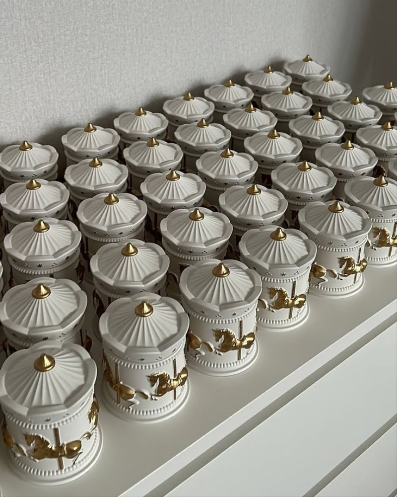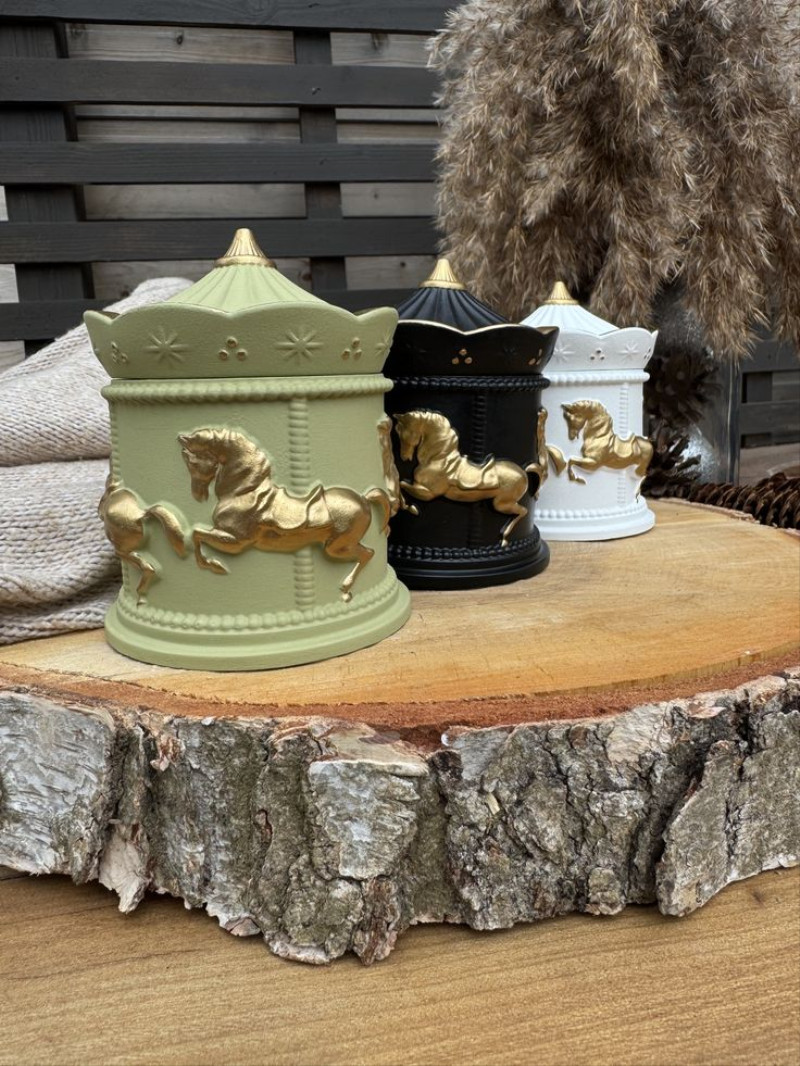 Шкатулки в виде карусели с лошадками, цвет в ассортименте, декорированно золотом окрасом лошадок.