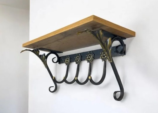 Элегантная настенная вешалка с удобной полкой — идеальное решение для прихожей, спальни или загородного дома. Конструкция сочетает функциональность и изысканный дизайн: металлические крючки с декоративными цветами и изящные кованые элементы создают атмосферу уюта и утонченности.