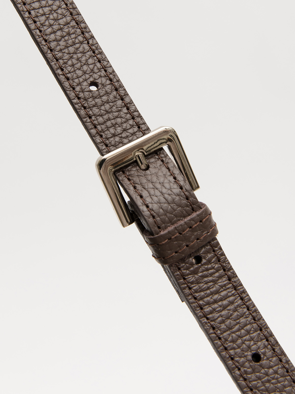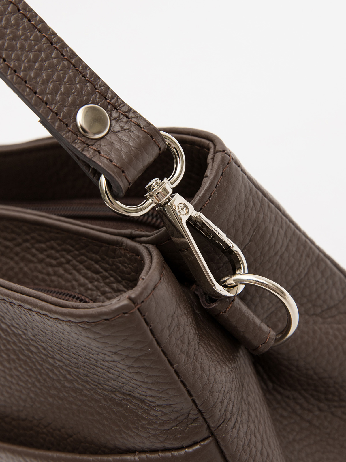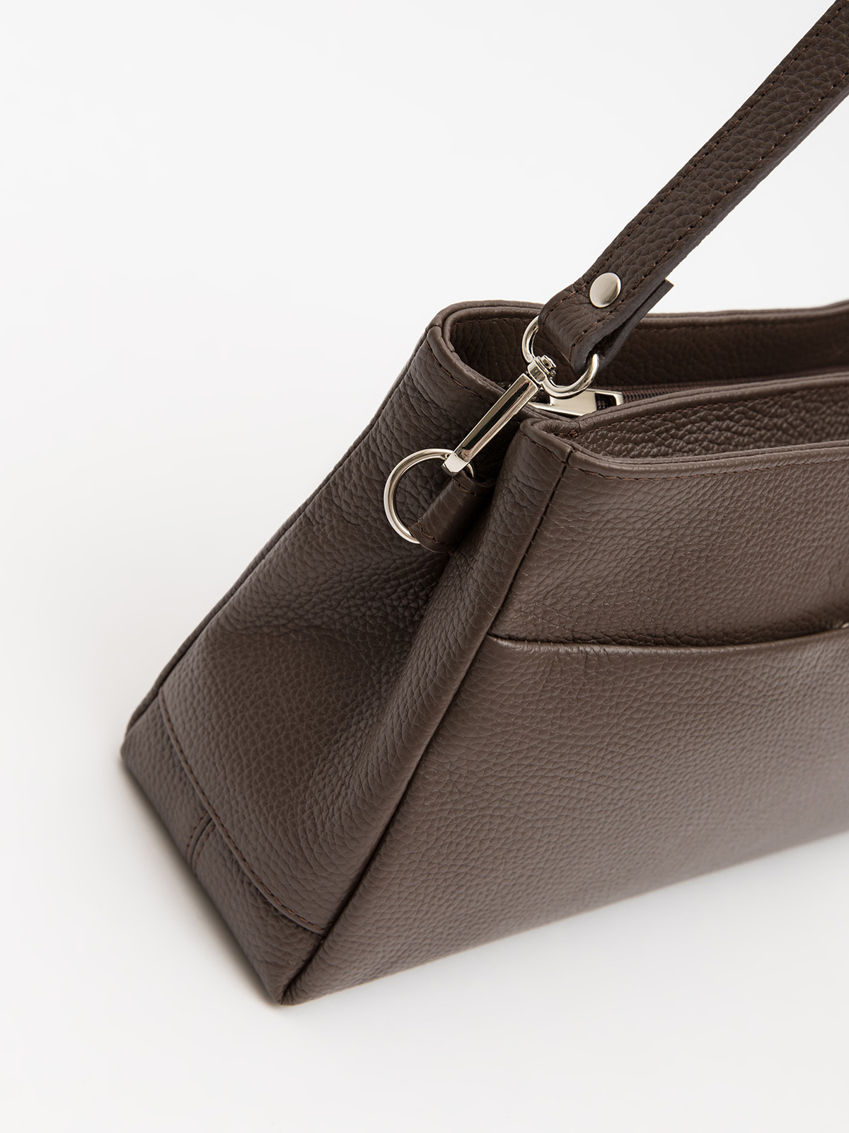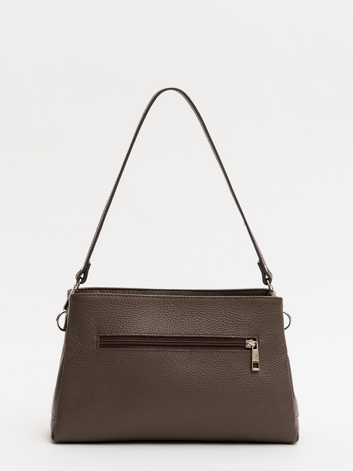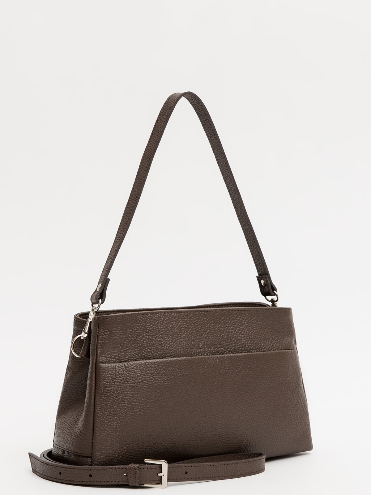 Элегантная сумка кросс-боди среднего размера из натуральной кожи с удобным длинным регулируемым ремнём и дополнительной ручкой на карабинах. Трапециевидная форма, расширяющаяся к низу, обеспечивает удобную организацию пространства с двумя основными отделениями на молнии и двумя внутренними карманами. На передней части — стильное тиснение и функциональный карман на кнопке, а на задней — дополнительный карман на молнии для мелочей. Практичная и стильная, эта сумка идеально подходит для повседневного использования, сочетая в себе удобство и элегантный дизайн. Универсальный аксессуар, который дополнит любой образ.