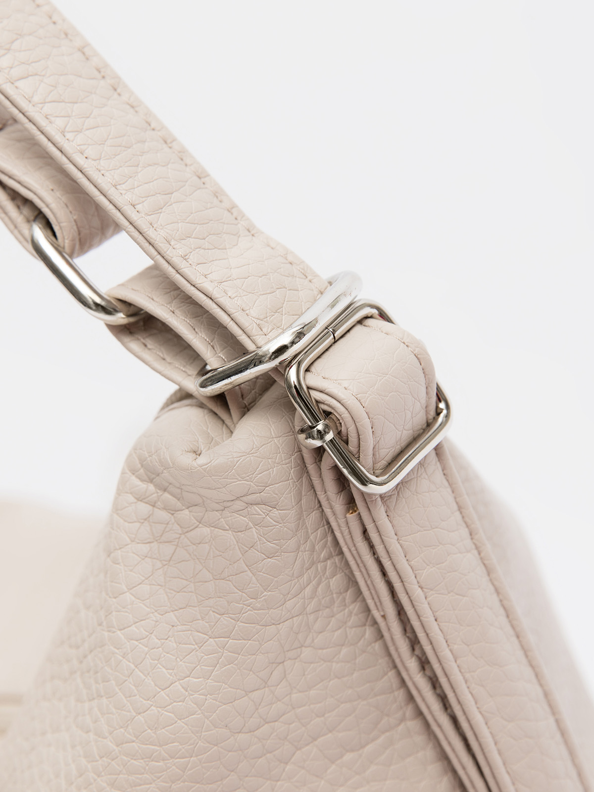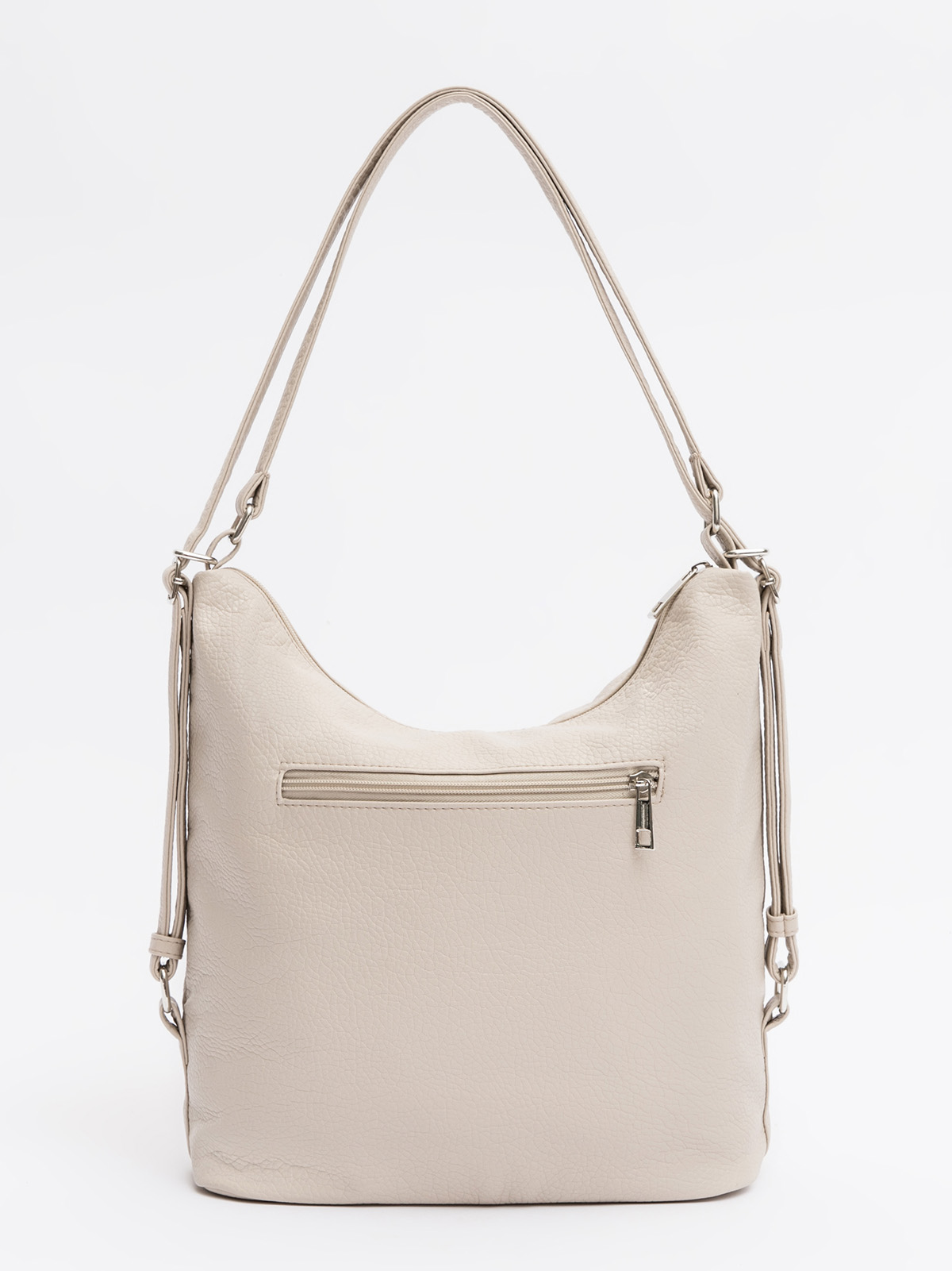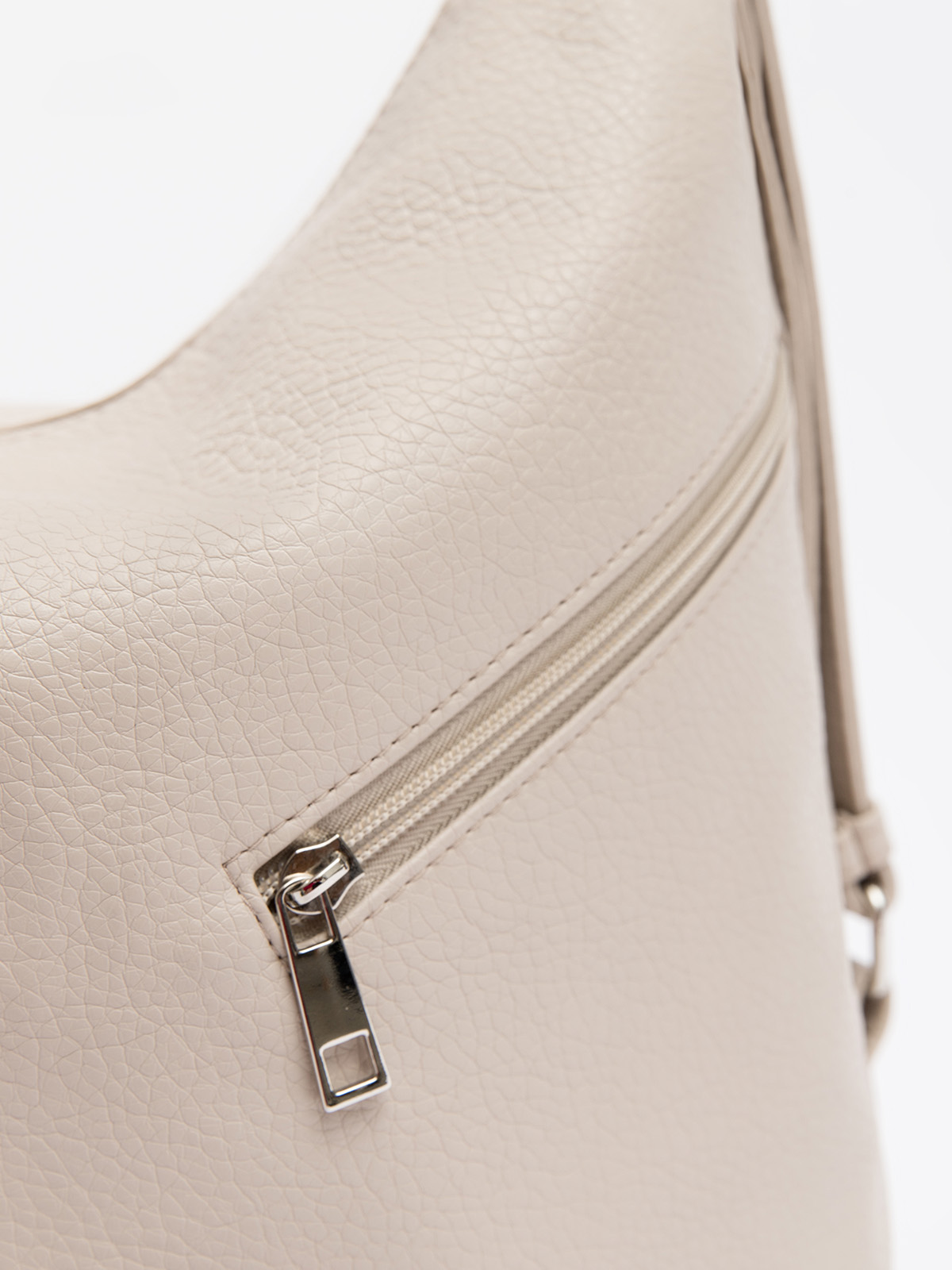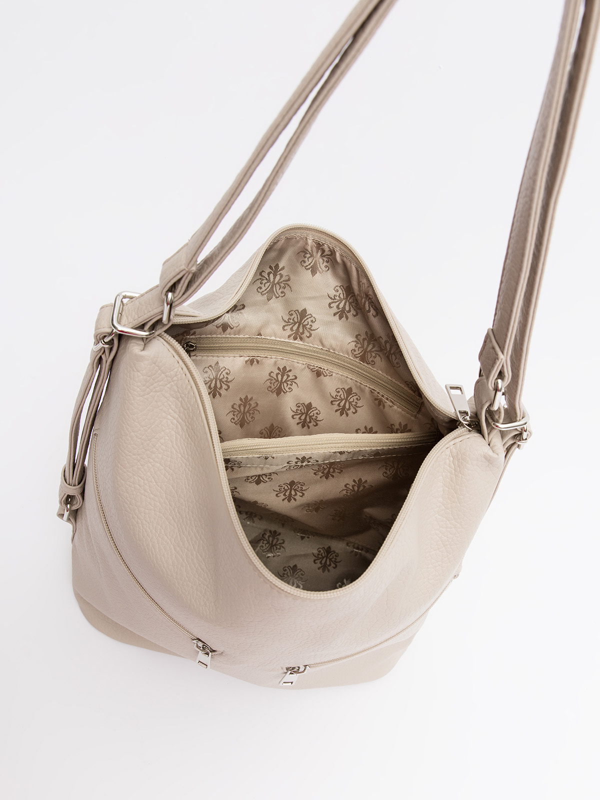 Мягкая форма легко превращается из стильного хобо в удобный рюкзак, подстраиваясь под ваши потребности. Просторное основное отделение с внутренней перегородкой-карманом и двумя диагональными карманами на молнии спереди обеспечивает идеальный порядок для всех вещей. Эти карманы не только функциональны, но и придают сумке современный динамичный вид. Незаменимый вариант для тех, кто ценит свободу выбора и практичность в каждой детали — носите её как угодно и куда угодно.