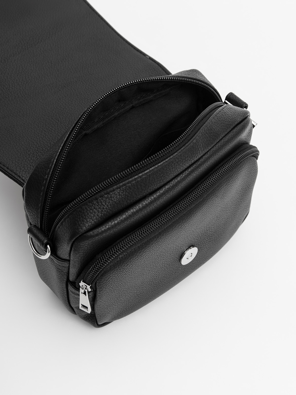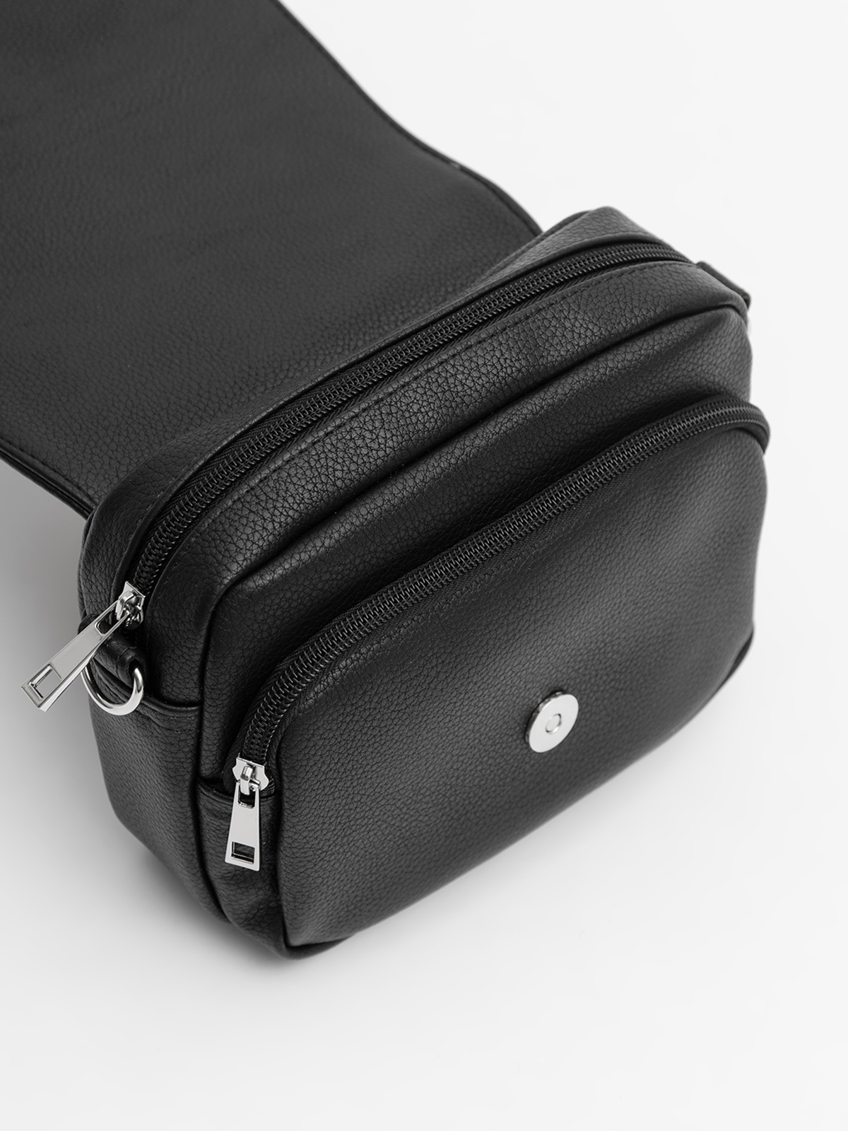 Стильная сумка кросс-боди размера S — идеальный баланс стиля и удобства для тех, кто ценит свободу движений. Объёмный передний карман, скрытый под элегантным клапаном, и удобный задний карман на молнии помогут компактно разместить все необходимые мелочи. Регулируемый ремень позволяет носить сумку на любом удобном уровне, подстраиваясь под ваш образ. Внутри вас ждёт практичный открытый карман для быстрого доступа к телефону или ключам. Лёгкая, функциональная и невероятно женственная — эта сумка станет вашим любимым аксессуаром.