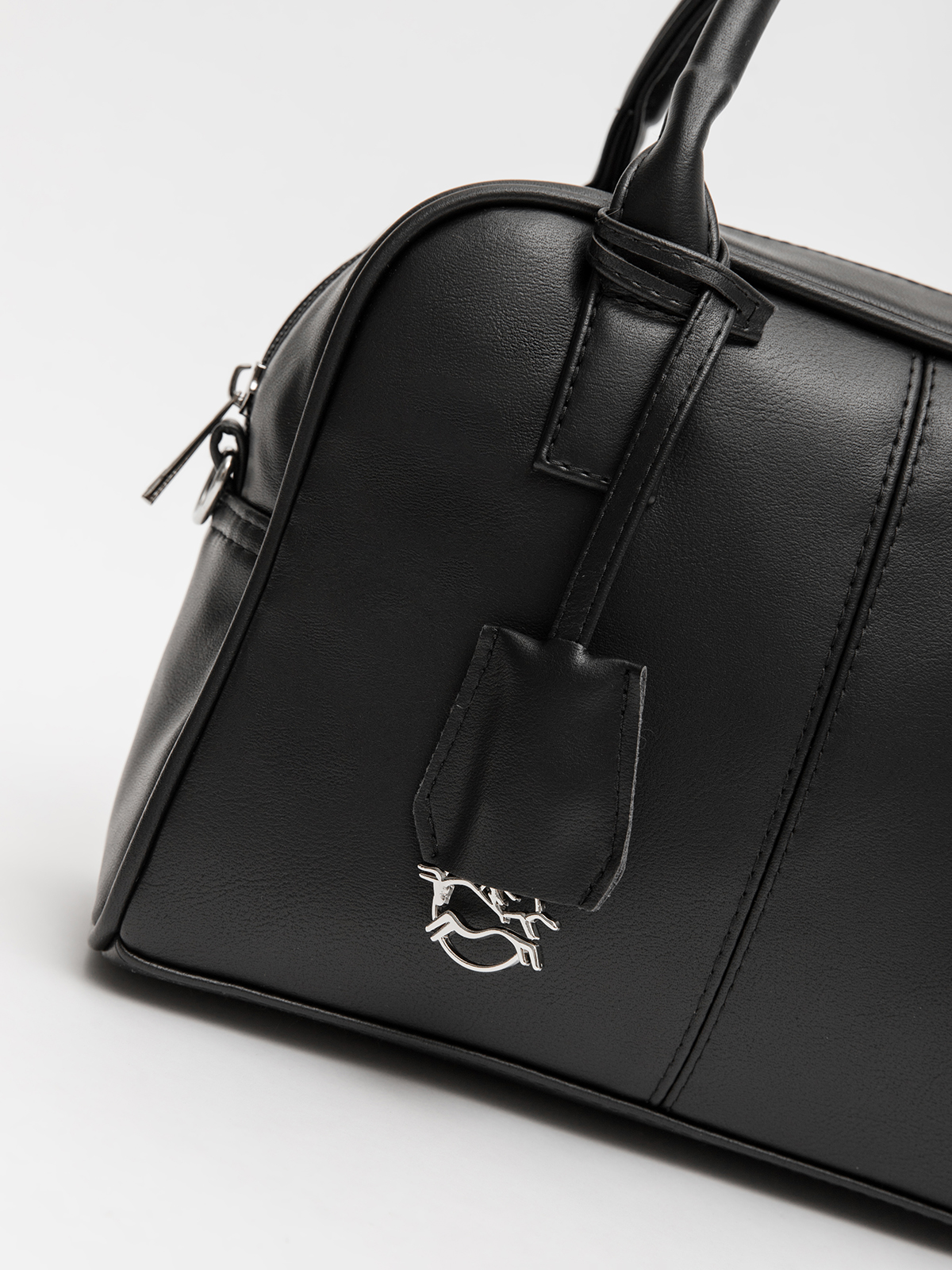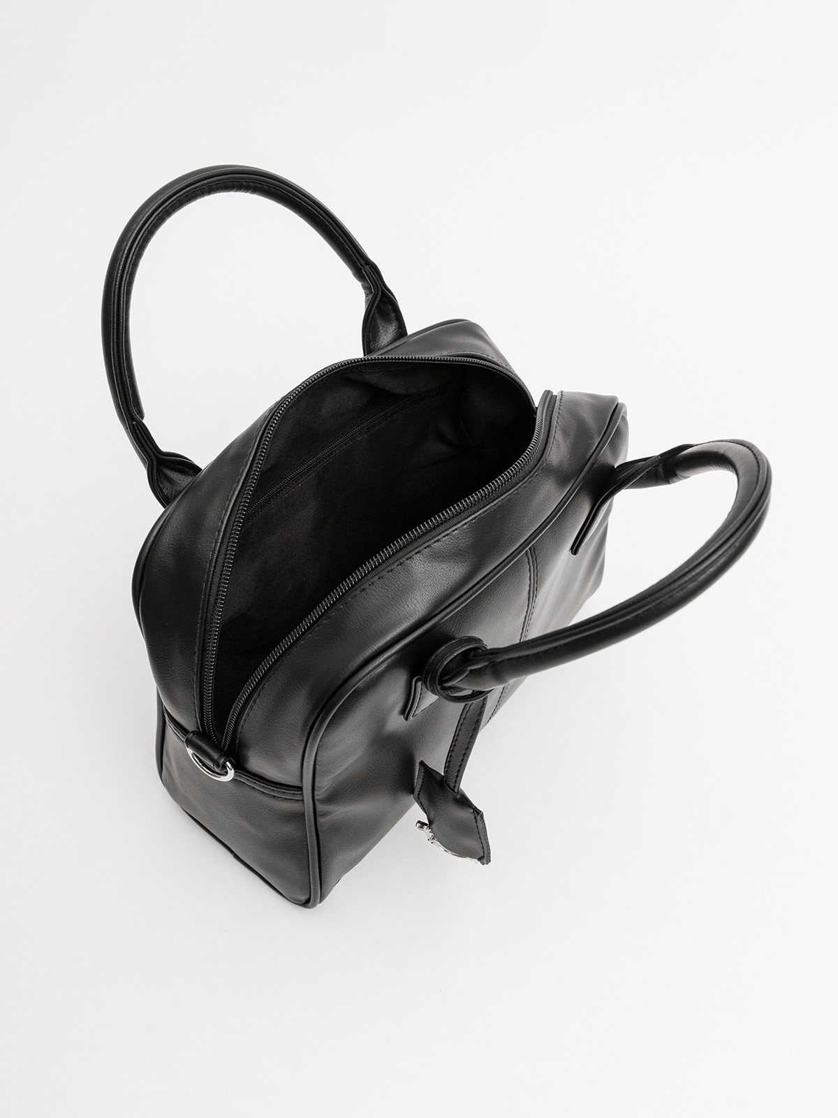 Актуальный силуэт в минималистичном дизайне легко сочетается с разными образами. Две ручки и длинный регулируемый ремень позволяют носить его в руке, на плече или как кросс-боди. Широкий бочок обеспечивает вместительность без громоздкости. Основное отделение дополнено задним карманом на молнии для быстрого доступа к мелочам. Внутри — карман на молнии для документов и отделение для телефона. Стильный съёмный брендированный декор добавляет индивидуальности.