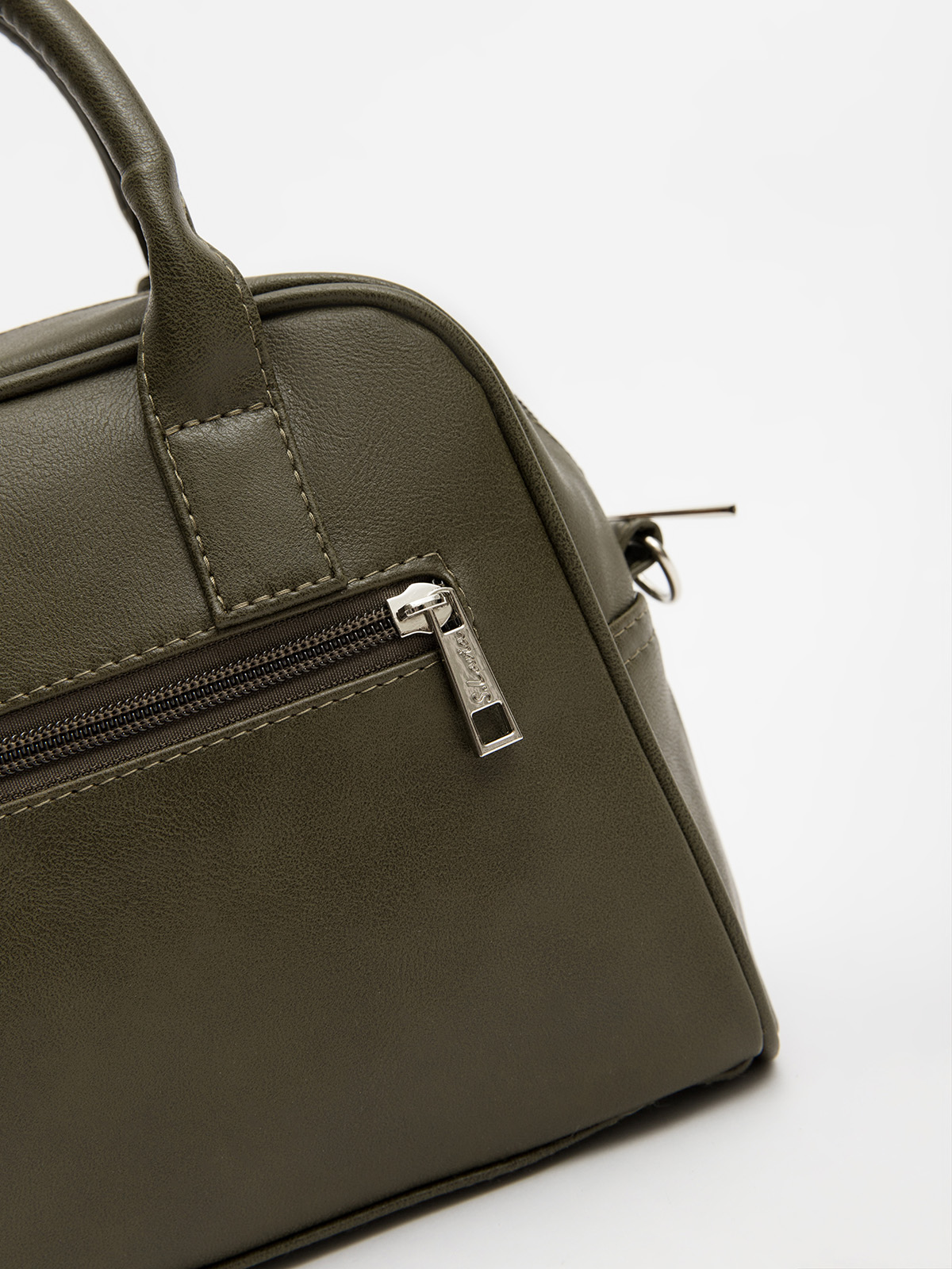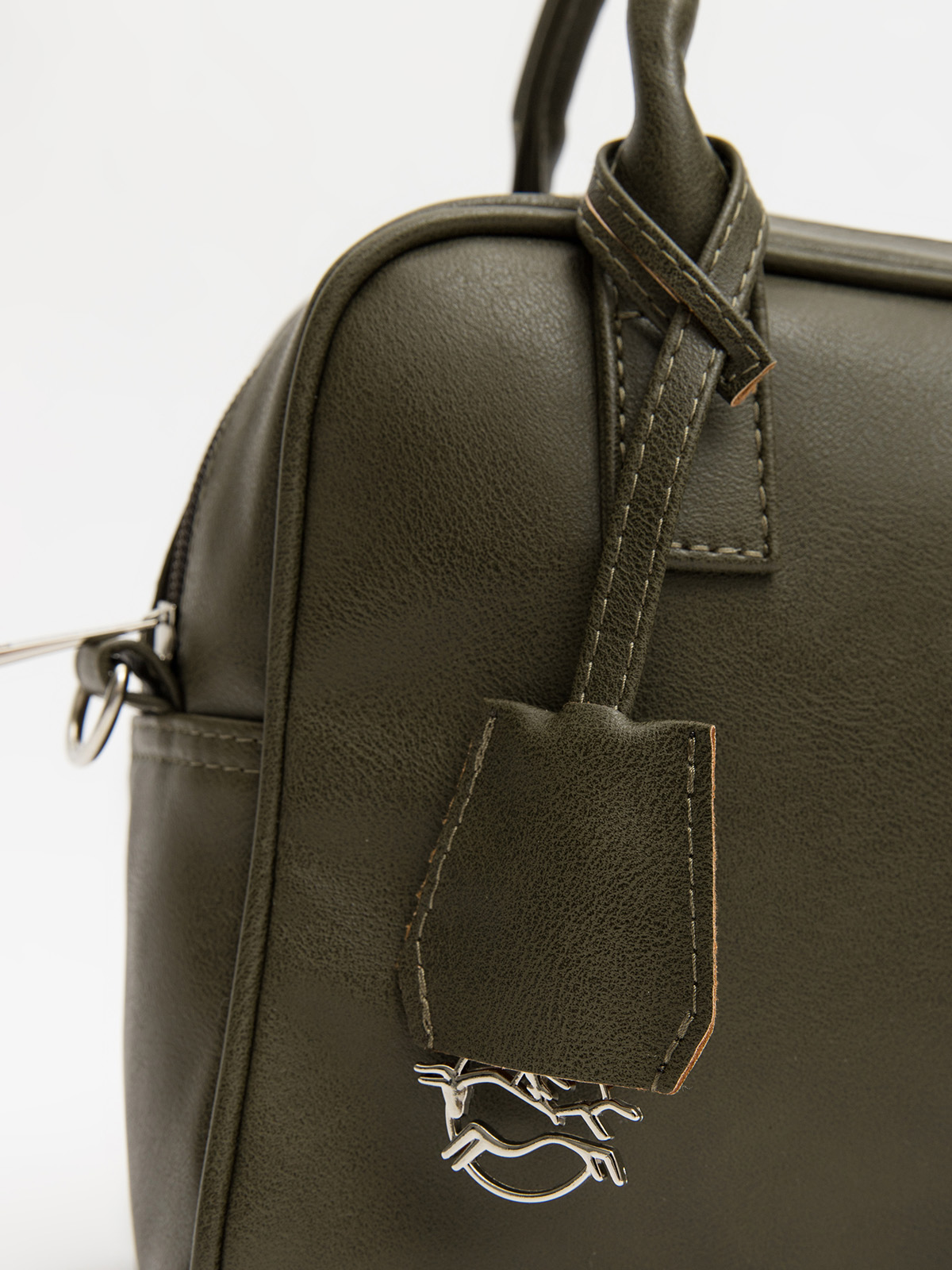 Актуальный силуэт в минималистичном дизайне легко сочетается с разными образами. Две ручки и длинный регулируемый ремень позволяют носить его в руке, на плече или как кросс-боди. Широкий бочок обеспечивает вместительность без громоздкости. Основное отделение дополнено задним карманом на молнии для быстрого доступа к мелочам. Внутри — карман на молнии для документов и отделение для телефона. Стильный съёмный брендированный декор добавляет индивидуальности.