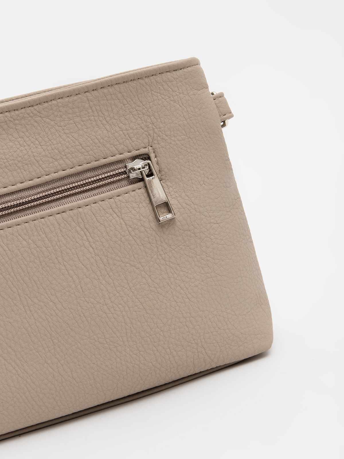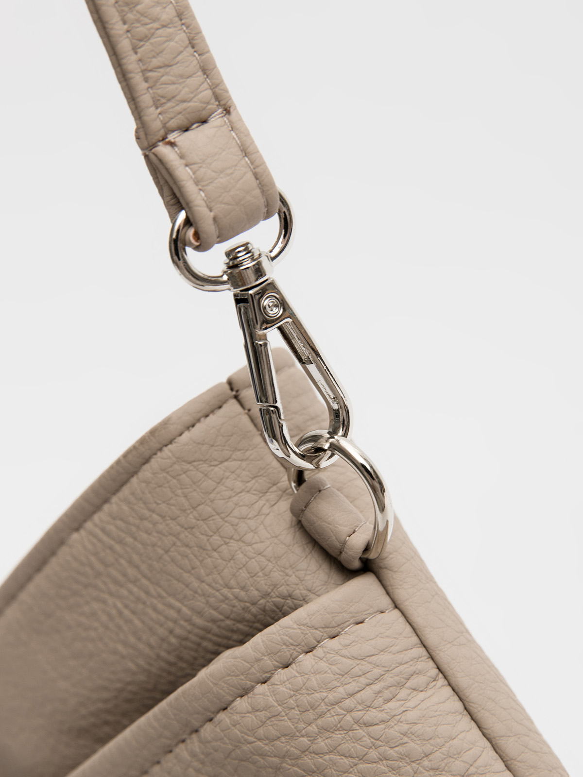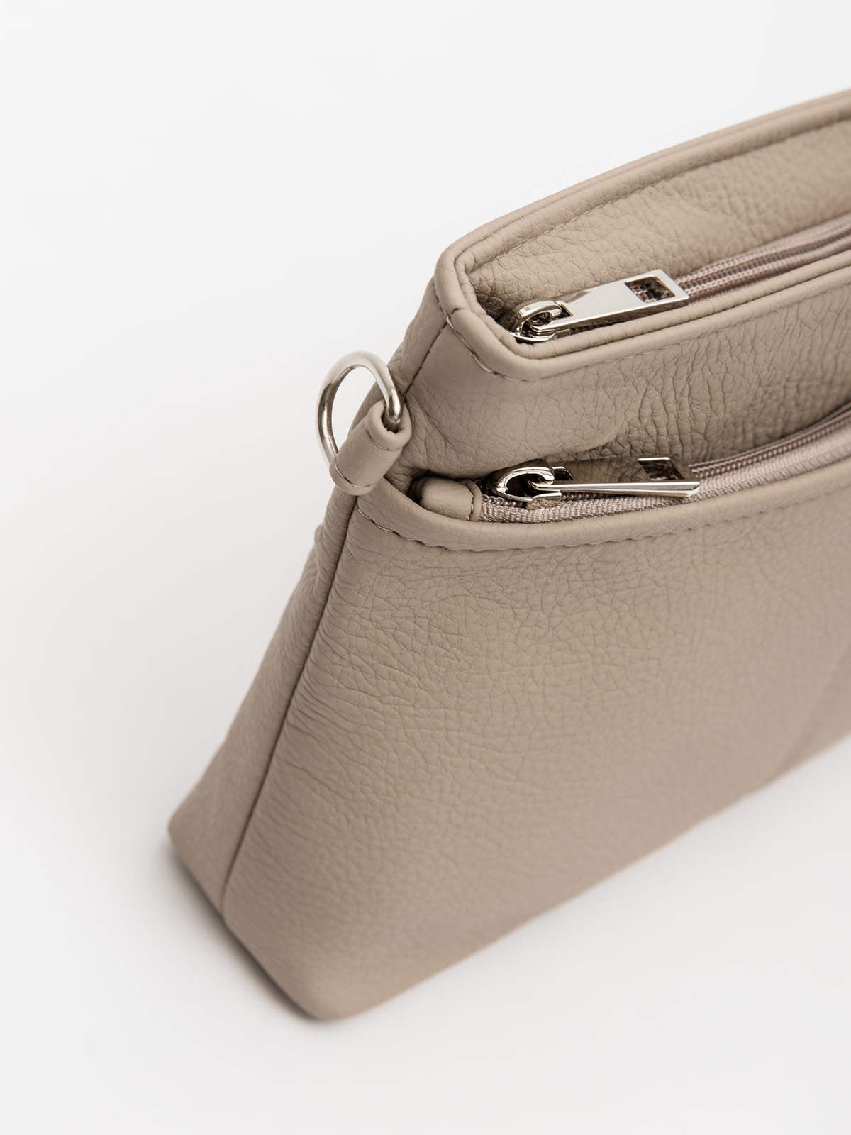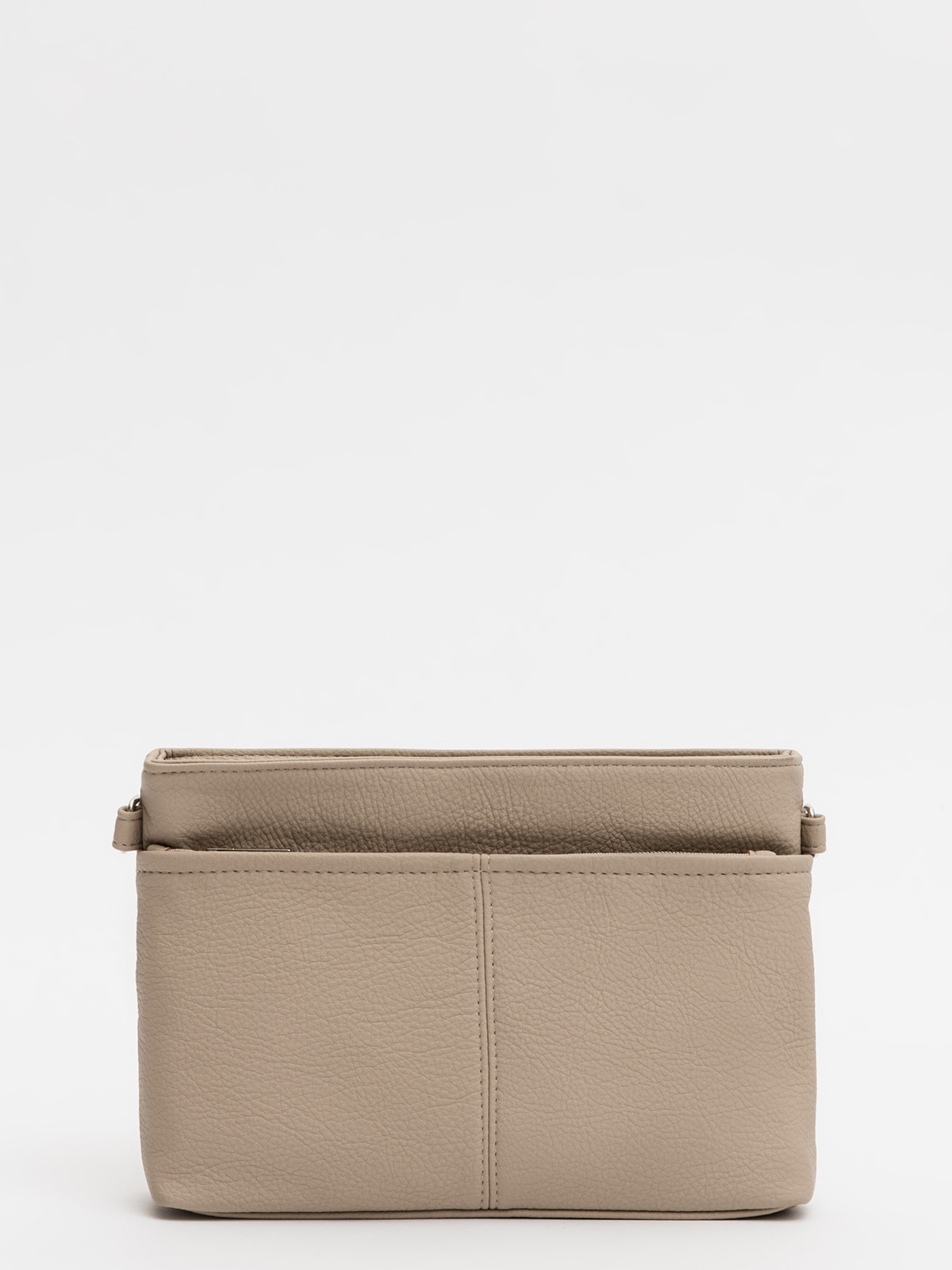 Доступна в однотонном исполнении для лаконичных луков и в комбинации трёх цветов для смелых сочетаний. Плоский силуэт без объёмного бочка позволяет носить её как клатч, а регулируемый ремень — на плече или через плечо. Множество карманов (основной отдел + передний карман + задний карман на молнии) обеспечивает идеальный порядок. Внутри — дополнительный карман на молнии и отделение для телефона. Компактная, но вместительная — идеальный баланс стиля и функциональности.