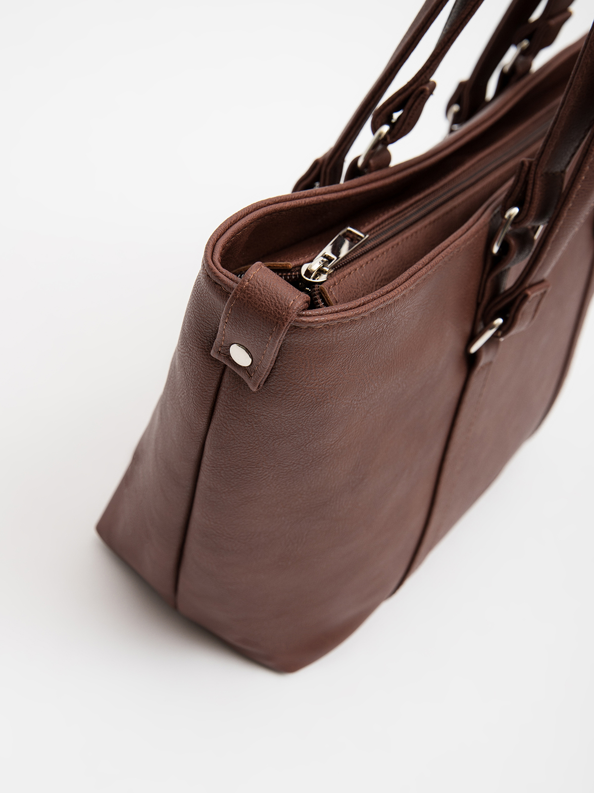 Этот тоут из износостойкой винилискожи с приятной текстурой воплощает ритм города в лаконичном горизонтальном силуэте размера M. Его вытянутая форма идеально подходит для дел на ходу, легко вмещая документы формата А4 и все повседневные мелочи в одном просторном отделе. Уникальность модели — в двух парах ручек разной длины, которые позволяют мгновенно адаптировать сумку под ситуацию: нести в руке или удобно перекинуть на плечо, подстраиваясь под ваш темп. Лаконичный дизайн городского минимализма делает её идеальным спутником для офиса, учёбы и ежедневных маршрутов.