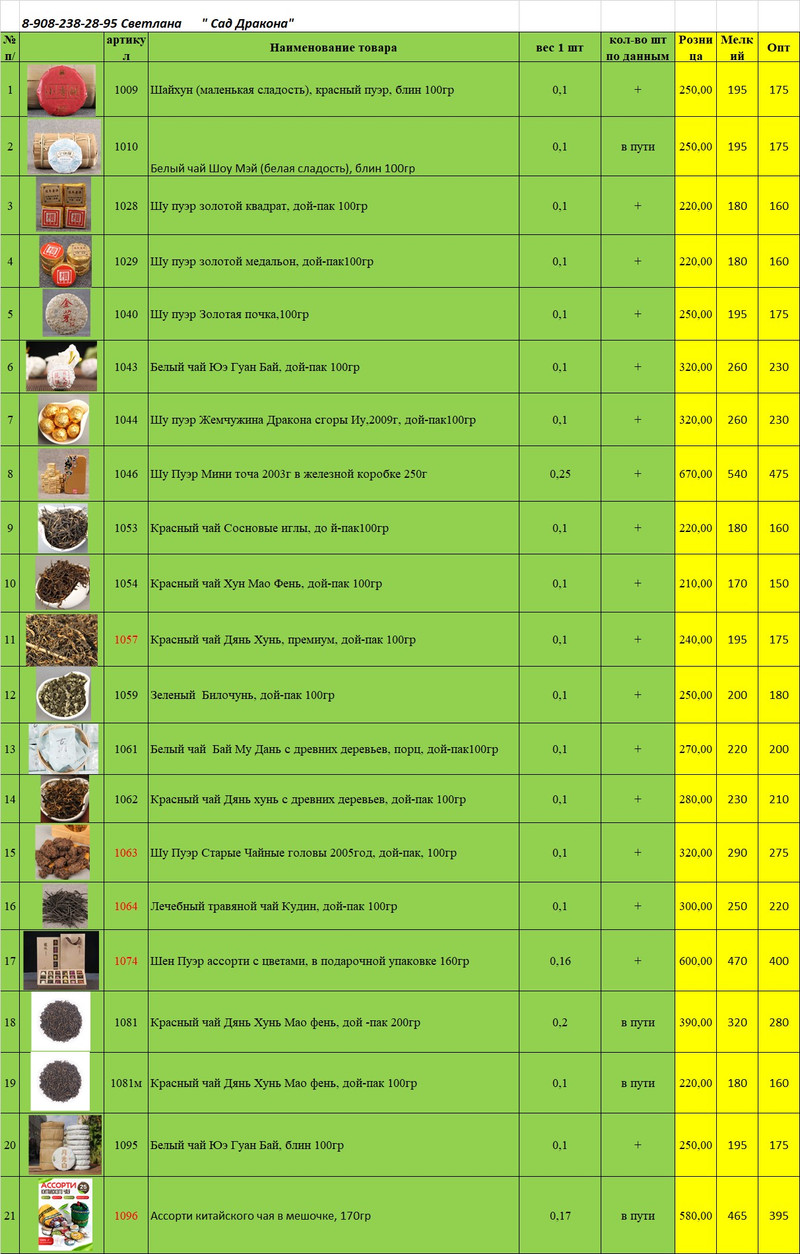 Чтобы купить ЧАЙ Китайский оптом по цене по запросу, свяжитесь с поставщиком. Компания поставщик — Сад дракона (ИП «Шаргаев Вячеслав Геннадьевич») из города Нижний Новгород (Нижегородская область). Минимальная сумма оптового заказа: 15000 руб. Минимальная партия 10 шт. Доставка возможна самовывоз, транспортной компанией, автомобилем, курьером. Способы оплаты: наличными, безналичная оплата.