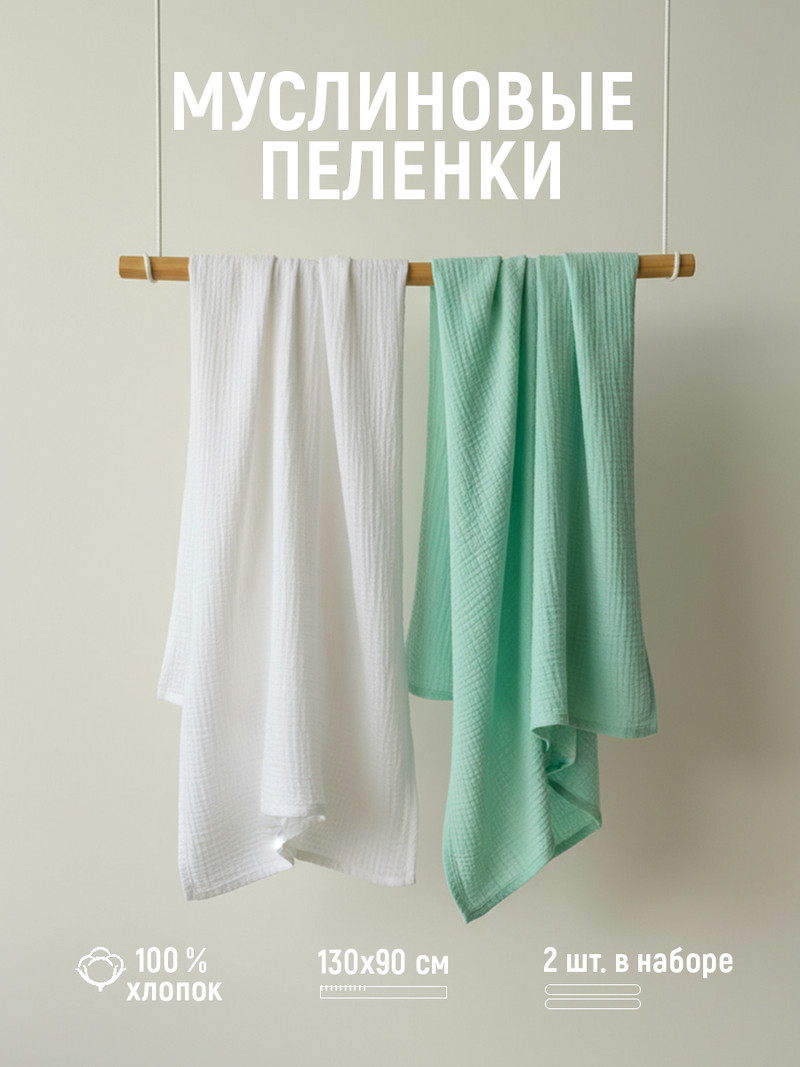 Муслиновые пеленки для новорожденных из жатого муслина — 100% органический хлопок. Пеленки мягкие, нежные и приятные к телу малыша. Такие пеленки очень быстро сохнут и обладают высокой воздухопроницаемостью. Края пеленки обработаны на оверлоке.
