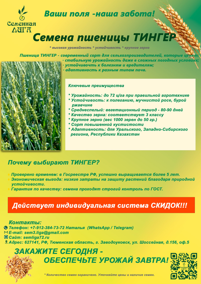 Более подробную информацию о сорте «ТИНГЕР» можно получить на сайте ФГБУ «Госсорткомиссия», а также на нашем сайте semliga72.ru по телефону: Наталья (WhatsApp/Telegram), e-mail: sem3. .
