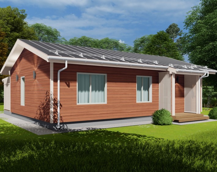 CLT панель 100 мм (внутренняя поверхность с имитацией обшивки и пазами под электропроводку), каркас из доски 45х95, утеплитель 100 мм ISOVER, ветрозащитная пленка, брусок вентзазора 20х40, обрешетка 20х120),
