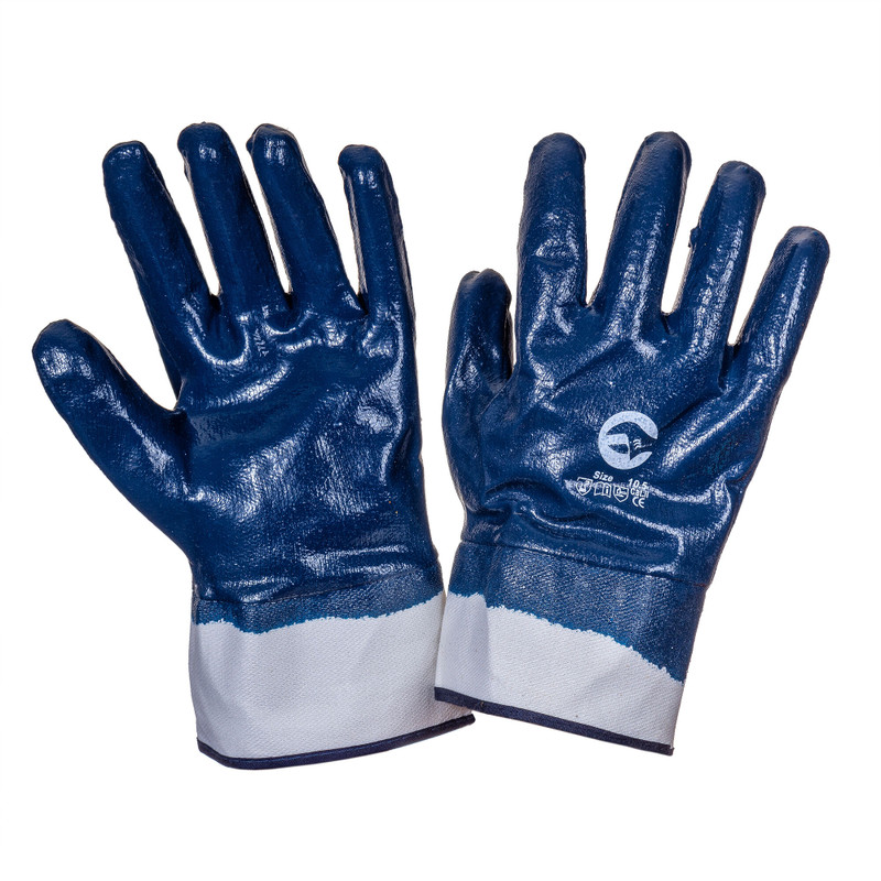 Прочные перчатки с двойным нитриловым покрытием, с подкладкой из ткани джерси. Полное покрытие, трикотажный манжет.