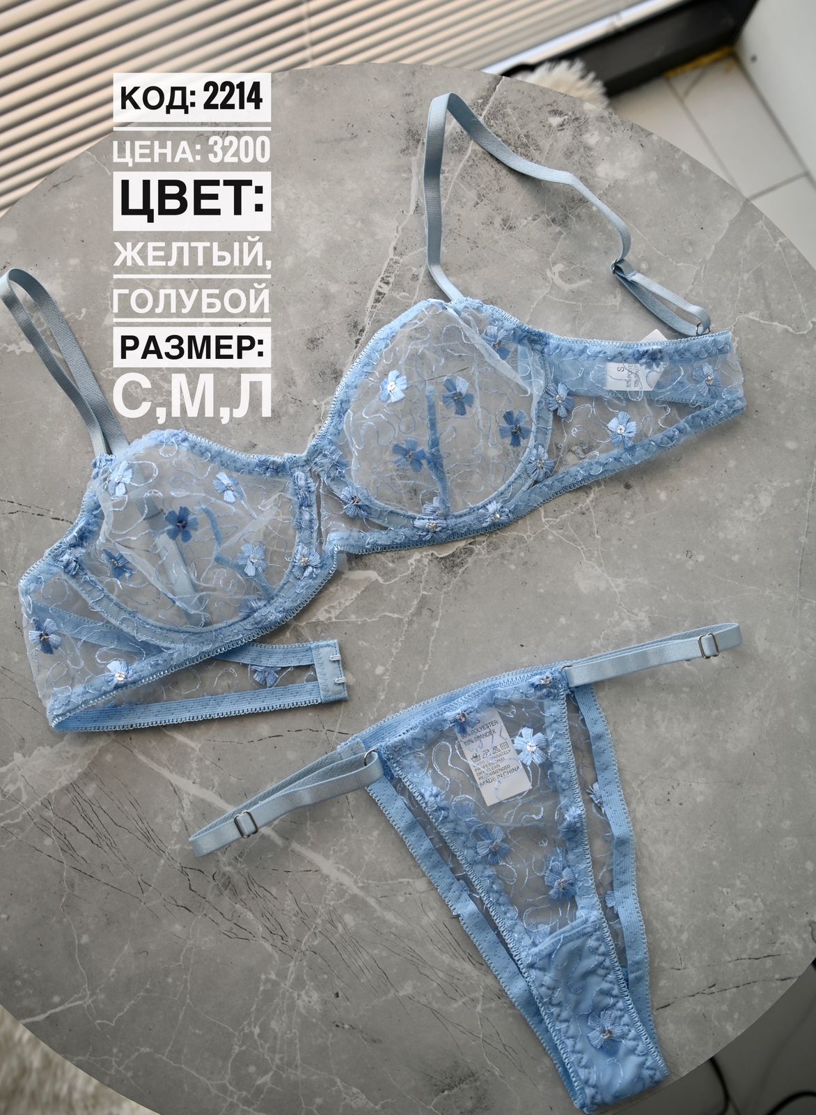 Чтобы купить 2214 голубой SML комплект оптом по цене по запросу, свяжитесь с поставщиком. Компания поставщик — Shantal lingerie из города Алматы. Минимальная сумма оптового заказа: 5000 руб. Доставка возможна транспортной компанией, курьером, самовывоз, авиатранспортом, автомобилем, железной дорогой. Способы оплаты: безналичная оплата, наличными.
