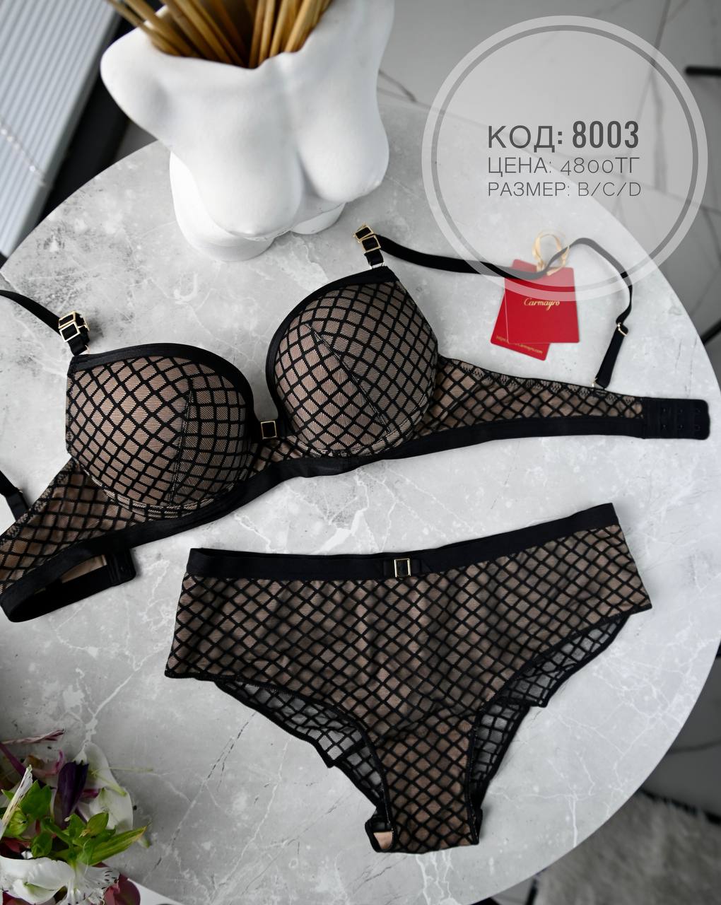 Чтобы купить 8003 черный B комплект оптом по цене по запросу, свяжитесь с поставщиком. Компания поставщик — Shantal lingerie из города Алматы. Минимальная сумма оптового заказа: 5000 руб. Доставка возможна транспортной компанией, курьером, самовывоз, авиатранспортом, автомобилем, железной дорогой. Способы оплаты: безналичная оплата, наличными.