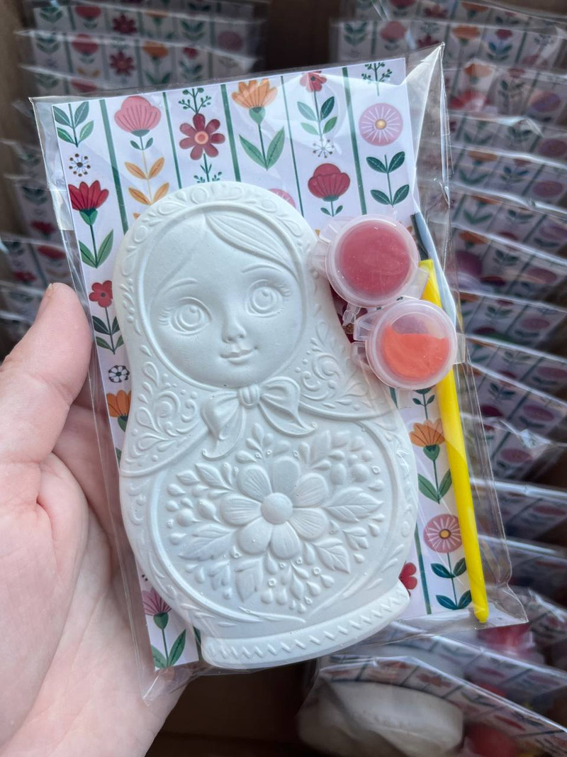 набор (пакетик, открытка, фигурка, 2 краски, кисть) 150р