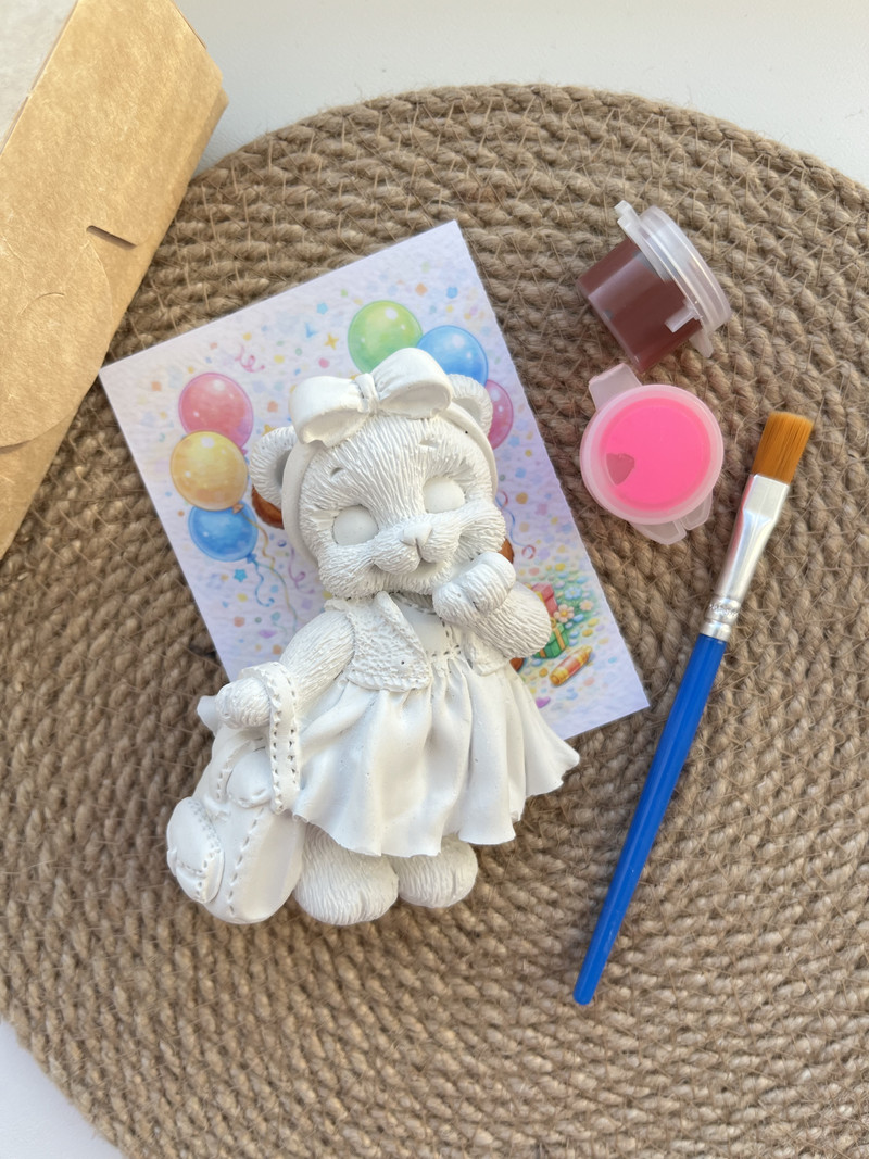 набор (пакетик, открытка, фигурка, 2 краски, кисть) 150р
