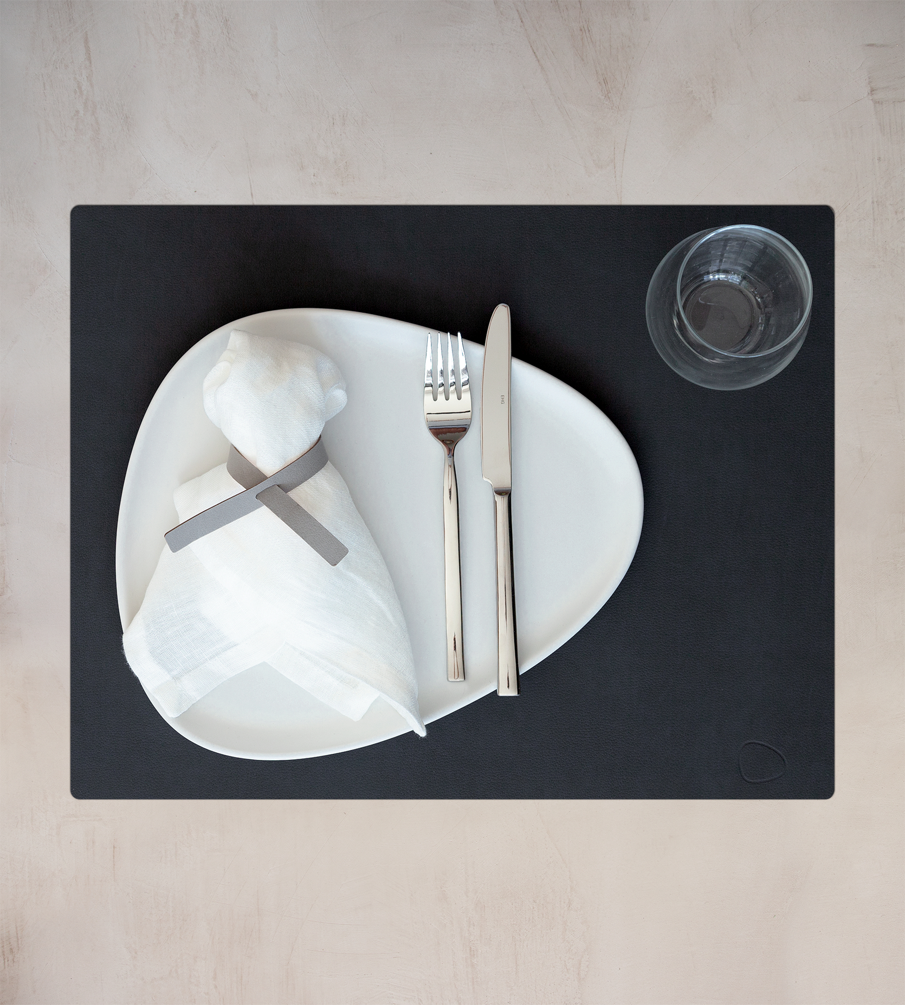 Прямоугольная форма достаточна для размещения тарелки, приборов и бокала.