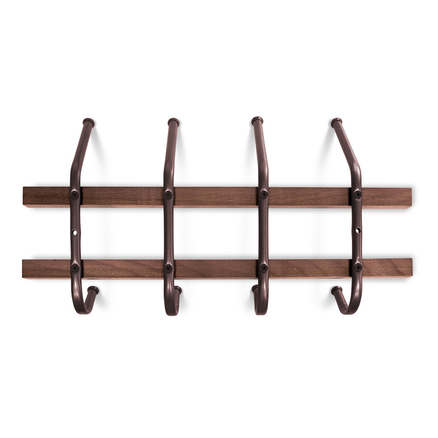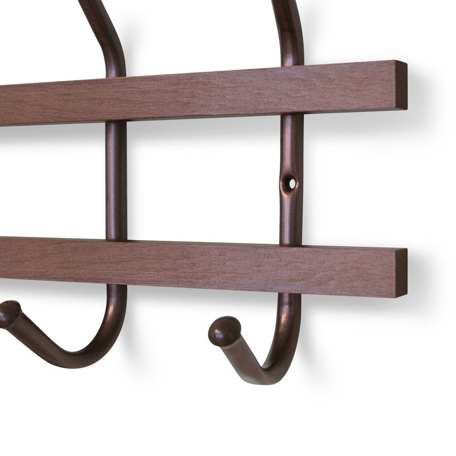 Стильное сочетание металла и дерева отлично впишется в дизайн домашней прихожей, офиса, кафе, ресторана или бара. <br>- Вешалка выполнена из металлической трубы 10 мм., пластиковой фурнитуры 16 мм. и планок из массива дерева толщиной 20 мм.;<br>- Расстояние между крючками 96 мм.;<br>- Расстояние между планками 96 мм.; <br>- Надежные металлические крючки окрашены порошковой краской устойчивой к механическому воздействию;<br>- Максимальная распределенная статическая нагрузка на крючок - 5 кг.;<br>- Рекомендуется переодически (не реже 1 раза/мес.) производить подтяжку всех резьбовых соединений;<br>- Для разных стен требуются различные крепежные приспособления. Подберите подходящие для ваших стен шурупы, дюбели, саморезы и т.п. (не прилагаются).<br>- Гарантия - 2 года.