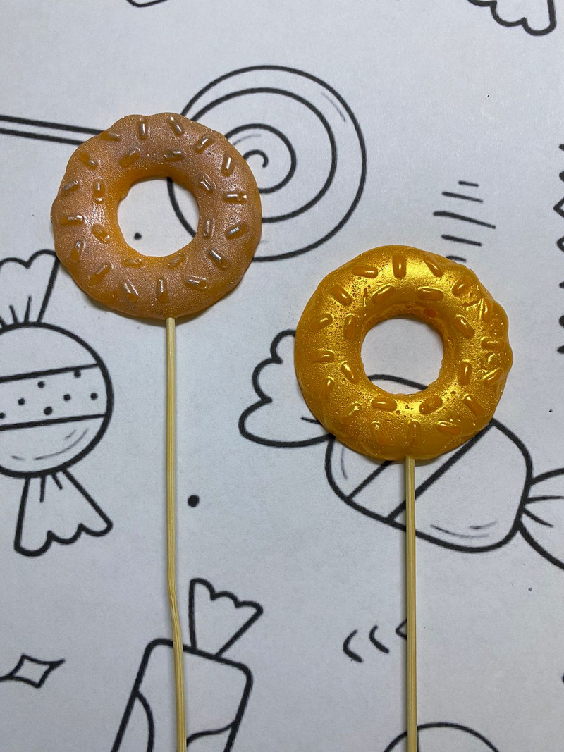 Вашему вниманию предлагаем леденцы на палочке из изомальта в форме пончика. Возможны любые вариации цвета и украшений. Вес 40 гр.