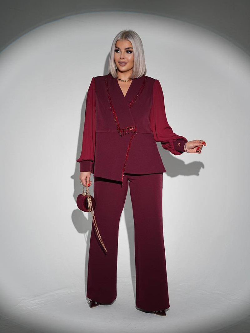 Нарядная классическая двойка из ткани Босс, рукава из ткани шифон, отличного качества