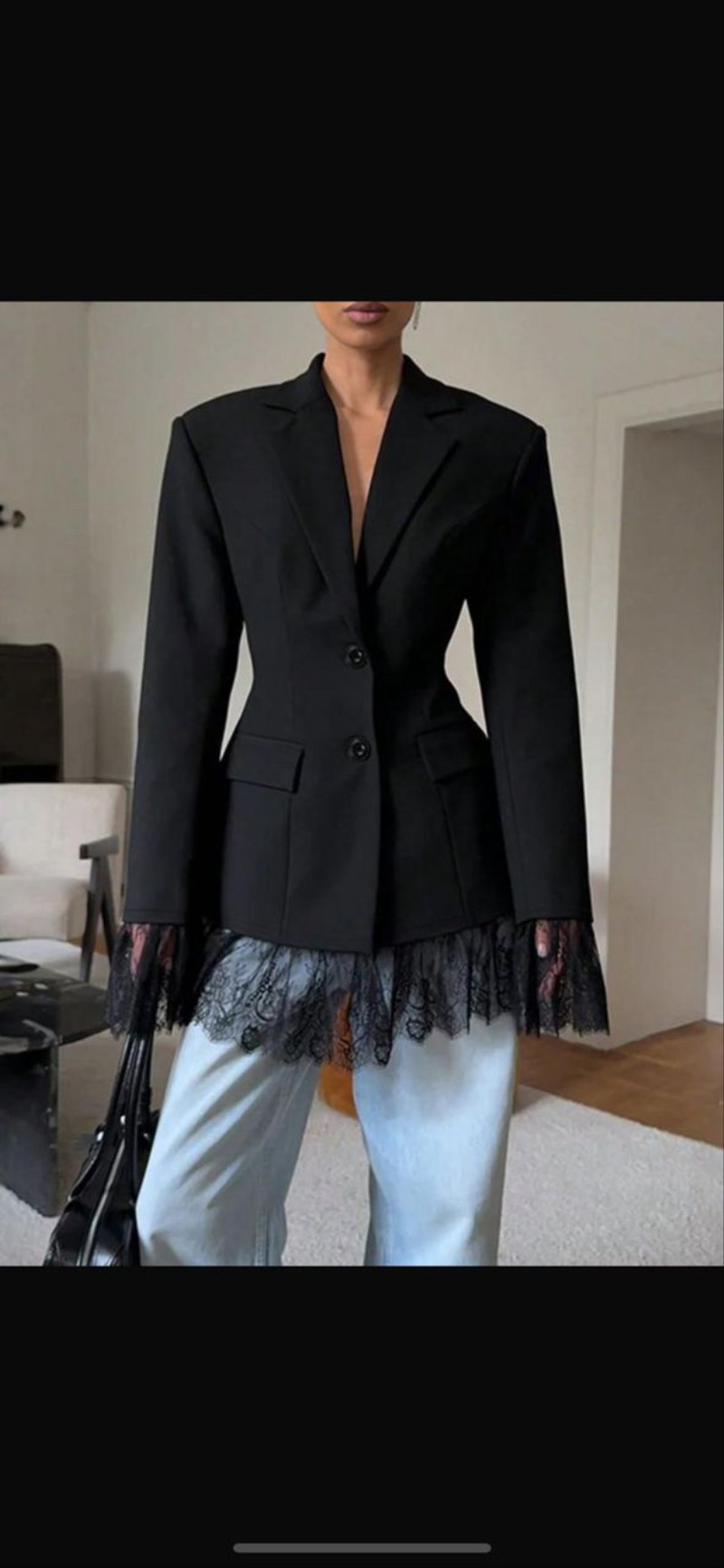 Приталенный пиджак с кружевом подчёркивает силуэт и добавляет образу утончённой женственности. Элегантный крой, изящные кружевные детали и комфортная посадка делают модель идеальной как для особых случаев, так и для стильных повседневных образов.