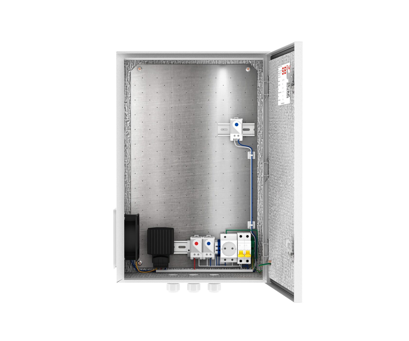 Термошкаф климатический монтажный универсальный с обогревом, защитой от холодного запуска и принудительной вентиляцией(500 x 400 x 250 мм)