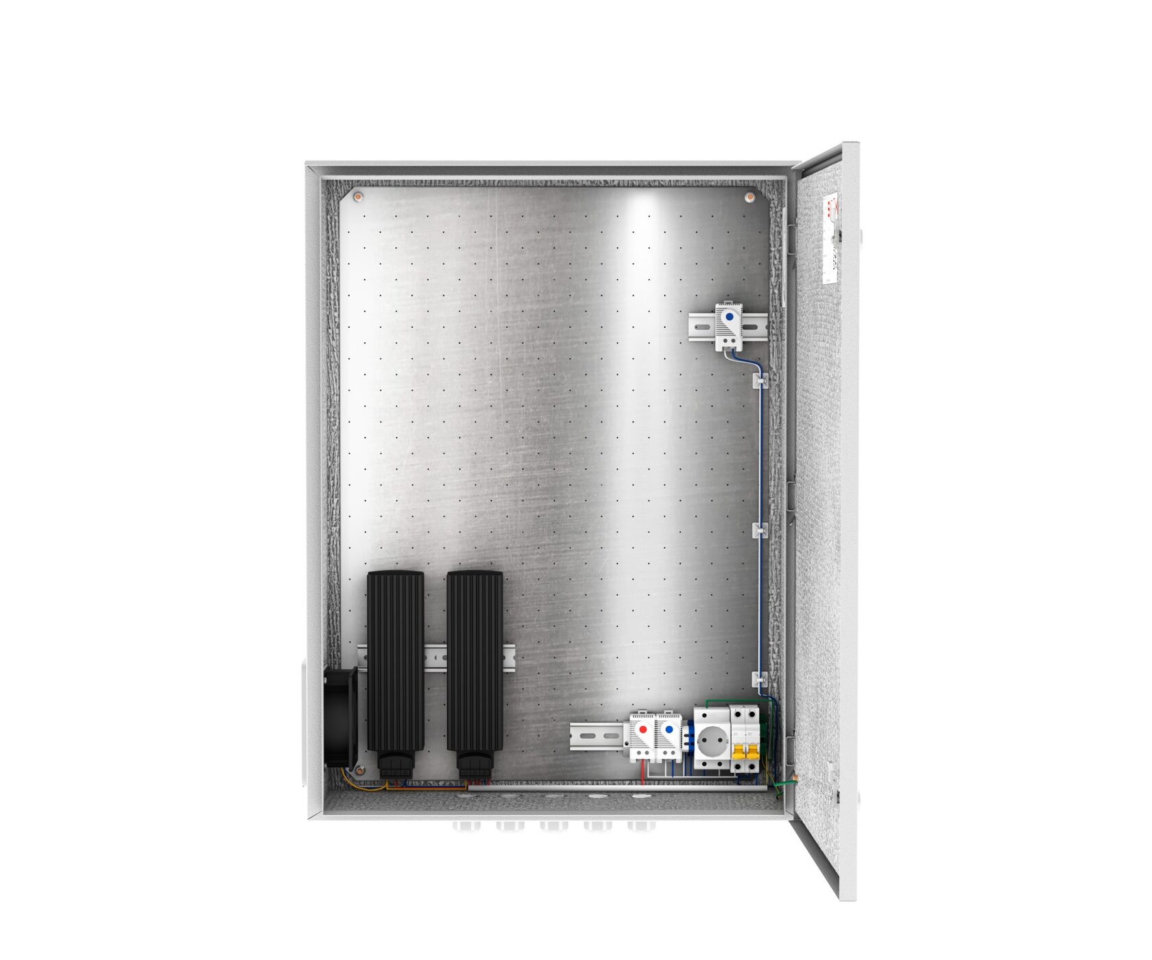 Термошкаф климатический монтажный универсальный с обогревом, защитой от холодного запуска и принудительной вентиляцией(800 x 600 x 250 мм)