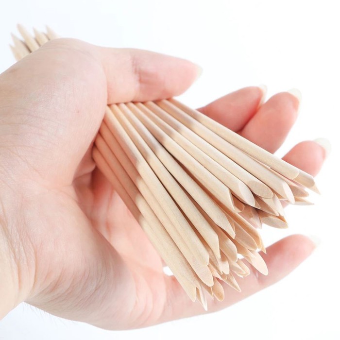 Апельсиновые палочки – универсальное приспособление для маникюра и педикюра. Они используются для наращивания, дизайна, очищения ногтей, отодвигании и удалении кутикулы. Подходит как для домашнего использования, так и для работы в салоне красоты. Ценят палочки за наличие заостренного носика с одной стороны и плоского скошенного конца с другой. Инструмент изготовлен из мягкого, но плотного дерева, что помогает палочкам прослужить долго. Экологически чистый материал мягко обработает пластину и за считанные секунды приведёт ваши ручки в порядок. Маникюр будет сделан безболезненно. Апельсиновые палочки не поддаются дезинфекции и стерилизации, являются одноразовыми.