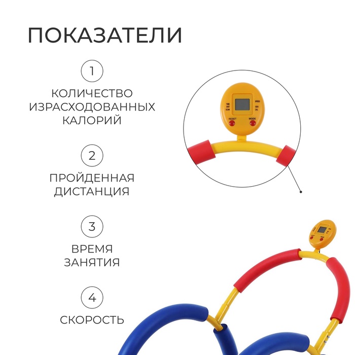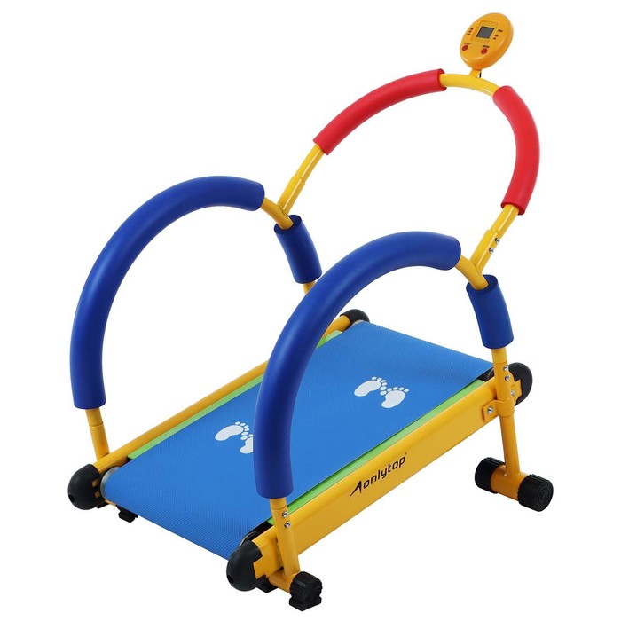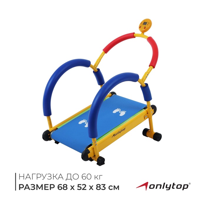 Детская беговая дорожка- совсем как настоящая, только маленькая. Ее трубы для безопасности покрыты мягким материалом.Электронный монитор показывает время занятия, скорость, пройденную дистанцию и количество израсходованных калорий. Монитор включается и выключается автоматически.Беговые дорожки помогают активизировать работу сердечнососудистой системы и органов дыхания, сжигают излишки жира. Важную положительную нагрузку беговые дорожки оказывают на мышцы ног и спины, на развитие координации движений. При этом амортизирующая поверхность бегового полотна минимизирует напряжение на суставы и позвоночник.Занятия на тренажере: Ребенок встает на дорожку. Взрослый предлагает ему сначала пройти по следам, а затем пробежать. Длительность - от 3 до 5 минут, через каждую минуту детям предлагается отдых в течение 30 - 40 секунд.Тренажер может применяться в любых детских учреждениях, комнатах отдыха и в домашних условиях. Перед использованием детской беговой дорожки проконсультируйтесь с врачом–педиатром.Беговая дорожка предназначена для детей от 4 до 8 лет.Максимальный вес пользователя: 60 кг.