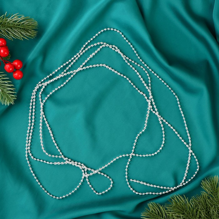 Нить блестящих маленьких шариков преобразит новогоднюю елочку и сделает ее нарядной. Бусы на ёлку 2,7 м d-4 мм "Шарики" микс имеют достаточную длину, что позволит украсить даже крупную елку.Также бусы могут использоваться как самостоятельный элемент декора. Например, ими можно украсить мебель, окна, стены. Из тонких бус легко выложить любые фигуры или слова, стоит лишь дать волю фантазии.
