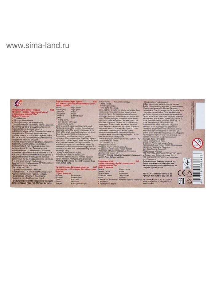 Чтобы купить Гуашь 12 цветов х 15 мл ZOO, блок-тара оптом по цене 176 руб., свяжитесь с поставщиком. Компания поставщик — Сима-Ленд (ООО «ТД "Сима-Ленд"») из города Екатеринбург (Свердловская область). Доставка возможна самовывоз, транспортной компанией, курьером, авиатранспортом, железной дорогой, автомобилем. Способы оплаты: наличными, безналичная оплата, кредитные карты.