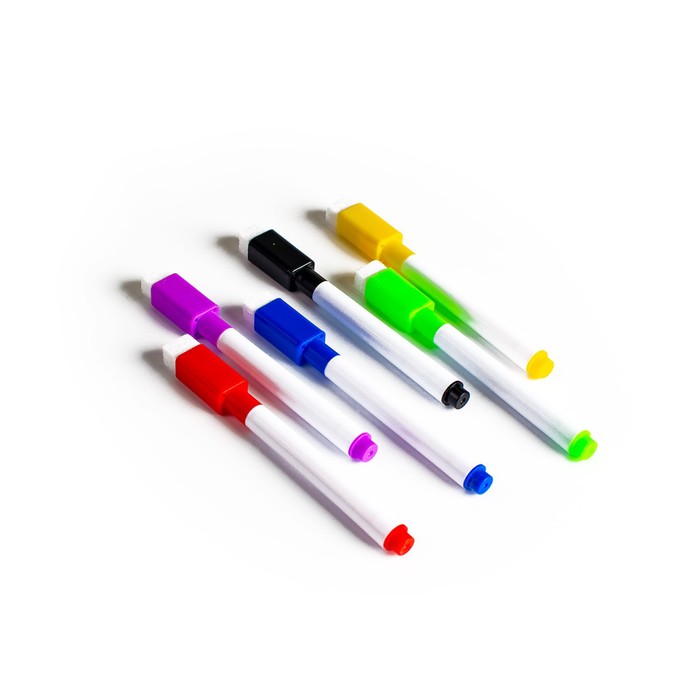 Находитесь в поиске маркеров для учебных или деловых презентаций на белой эмалевой доске? Маркеры цветные 6 цветов, водная основа, 6 шт. – подходящий выбор для самых успешных презентаций. Этот вариант включает в себя все достоинства обычных маркеров для досок – насыщенный цвет, ровную яркую линию, светоустойчивость. Однако водная основа имеет свои особые преимущества. Маркеры на такой основе приятно пахнут, быстро высыхают и легко стираются губкой. А самое главное – они абсолютно безвредны для здоровья, поэтому особенно популярны в детских садах и школах. Покупая такой маркер для магнитной доски с ощутимой выгодой, вы делаете правильный выбор.