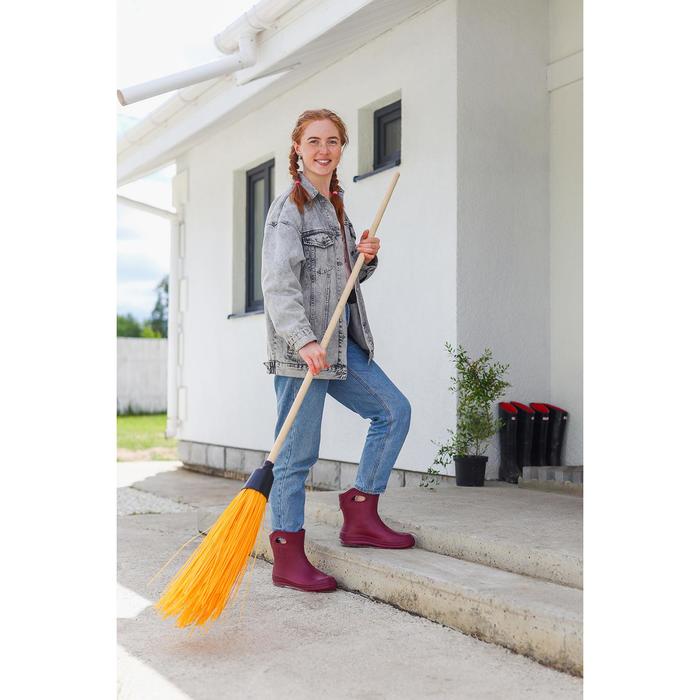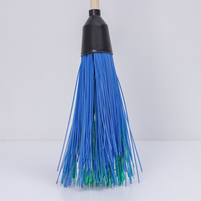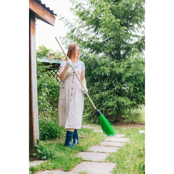 Метла подходит для уборки сухой и мокрой листвы, снега, грязи и другого мусора. Инструмент состоит из пластиковой насадки и берёзового черенка. Если исключить контакт с щелочами и кислотами, то оно прослужит больше двух лет.Характеристики:5 колец;мягкий ворс из первичного полипропилена;вес ворса — 380 г;длина ворса — 35 см;берёзовый черенок высшего сорта;длина черенка — 120 см;пластмассовый колпак.