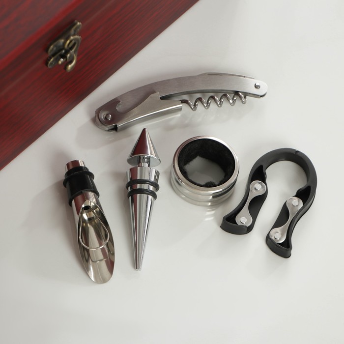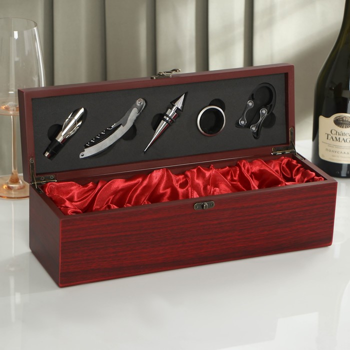Набор для вина Доляна — это идеальный подарок для всех, кто любит наслаждаться вкусом и ароматом хорошего вина. В набор входит все необходимое, чтобы открыть и насладиться бутылкой вина в комфортной атмосфере.Набор поставляется в стильном деревянном кейсе, который содержит: штопор, пробку для бутылки, кольцо для бутылки, нож для фольги и каплеуловитель. Все предметы изготовлены из прочной нержавеющей стали и имеют эргономичный дизайн.Преимущества набора для вина:Стильный и практичный подарок: набор для вина — отличный подарок для любителей вина и всех, кто ценит качество и стиль.Полный набор: в набор входит все необходимое для открытия и наслаждения бутылкой вина.Высокое качество: все предметы изготовлены из прочной нержавеющей стали и имеют эргономичный дизайн.Удобство в использовании: все предметы набора просты в использовании и обеспечивают комфортное и безопасное открытие бутылки вина.Стильный кейс: набор поставляется в стильном деревянном кейсе, который служит отличной упаковкой и хранением всех предметов набора.Набор для вина Доляна — это отличный выбор для тех, кто хочет сделать свой вечер более комфортным и приятным.