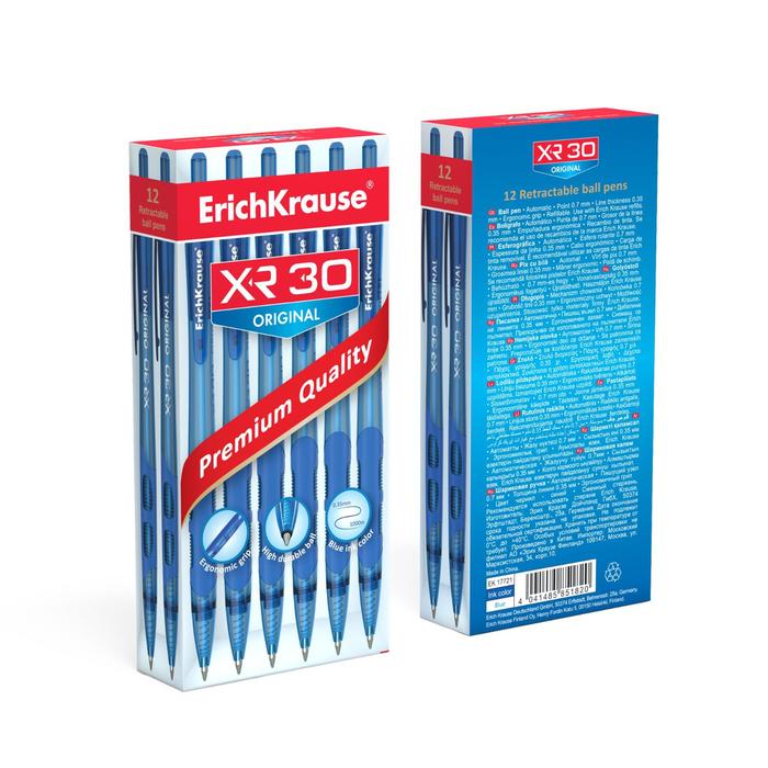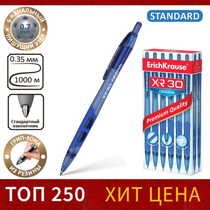 Чтобы купить Ручка шариковая автоматическая ErichKrause XR-30, узел 0.7 мм, чернила синие, резиновый держатель, длина линии письма 1000 метров оптом по цене 32 руб., свяжитесь с поставщиком. Компания поставщик — Сима-Ленд (ООО «ТД "Сима-Ленд"») из города Екатеринбург (Свердловская область). Доставка возможна самовывоз, транспортной компанией, курьером, авиатранспортом, железной дорогой, автомобилем. Способы оплаты: наличными, безналичная оплата, кредитные карты.