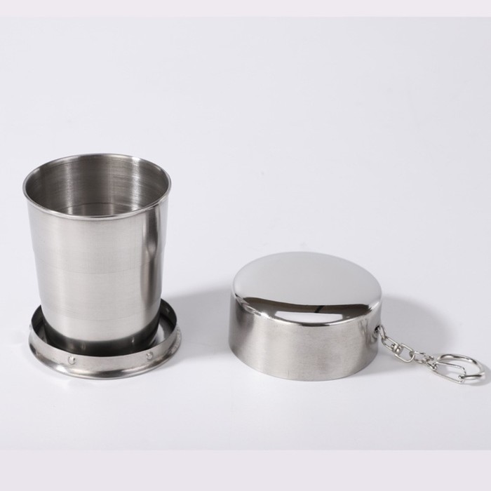 Стакан складной многоразовый объемом 150 мл, изготовлен из высокого качества 304 нержавеющей стали. Универсальный вариант для туристических походов, путешествий, рыбалки, охоты или выездов на природу. Он не только красиво смотрится, но и обеспечивает долгий срок службы изделия. Легко моется и подходит для повседневного использования. Отлично заменит стеклянные рюмки и бокалы, смотрится эффектно и стильно. Стакан, удобно помещается в руке и имеет оптимальный и вместительный объем 150 мл.Складной стакан удобно брать с собой в сложенном виде, он занимает мало места и его можно положить в карман или рюкзак, а это очень важно в походах. Стакан из детства вернет вас в беззаботное время СССР. Компактный раскладной стакан, складывающийся и раскладывающийся одним движением руки, имеет карабин, который можно легко зацепить на хлястик ваших брюк или рюкзак. Рюмка туристическая из нержавеющей стали закрывается крышкой, что позволяет ей быть всегда компактной, легко помещающейся в карман.Стопочка-брелок из нержавейки станет отличным подарком рыболову, охотнику, папе или маме, бабушке или дедушке, а еще коллеге или начальнику боссу на день рождения или 23 февраля, 9 мая, 8 марта, юбилей, новый год. Пойдет как кружка на пикник для путешественников. Это отличная альтернатива одноразовым стаканам.